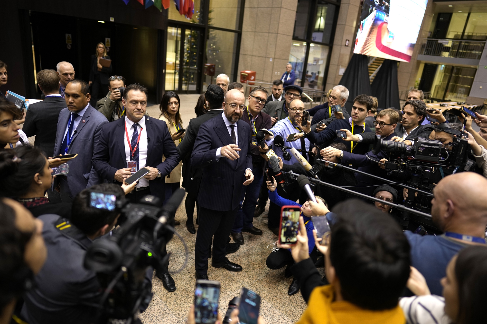 Προσώρας, ο πρόεδρος του Ευρωπαϊκού Συμβουλίου Σαρλ Μισέλ απορρίπτει κατηγορηματικά αυτό το ενδεχόμενο. Σε ενημέρωση ανταποκριτών ευρωπαϊκών εφημερίδων –μετά το τέλος της Συνόδου Κορυφής– ανέφερε πως στην έκτακτη συνεδρίαση των «27» Ευρωπαίων ηγετών στις αρχές του 2024 θα απαιτηθεί «ομοφωνία». Ανέφερε ωστόσο πως η ιδέα της «απουσίας» του Ορμπαν έδωσε μια εποικοδομητική λύση σε ένα ζήτημα που απασχολεί εδώ και χρόνια την Ε.Ε., δηλαδή τη δυσκολία επίτευξης συμβιβασμών σε κρίσιμα ζητήματα και κυρίως αυτά που αφορούν τη διεύρυνση, αλλά και την εξωτερική πολιτική της Ενωσης.