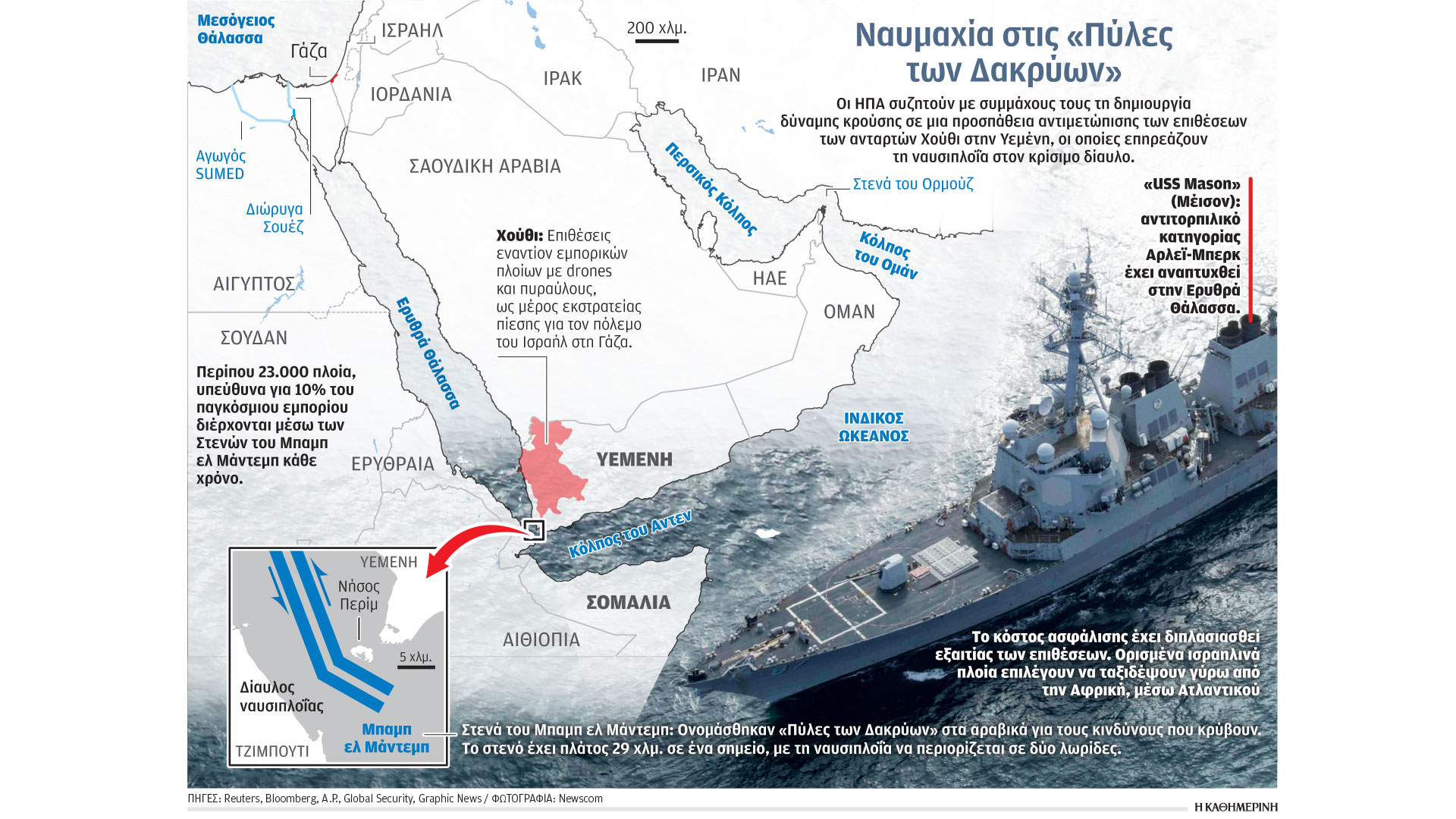 Πύραυλοι των Χούθι της Υεμένης κατά των εμπορικών πλοίων διακόπτουν τη διακίνηση αγαθών μέσω του Σουέζ .