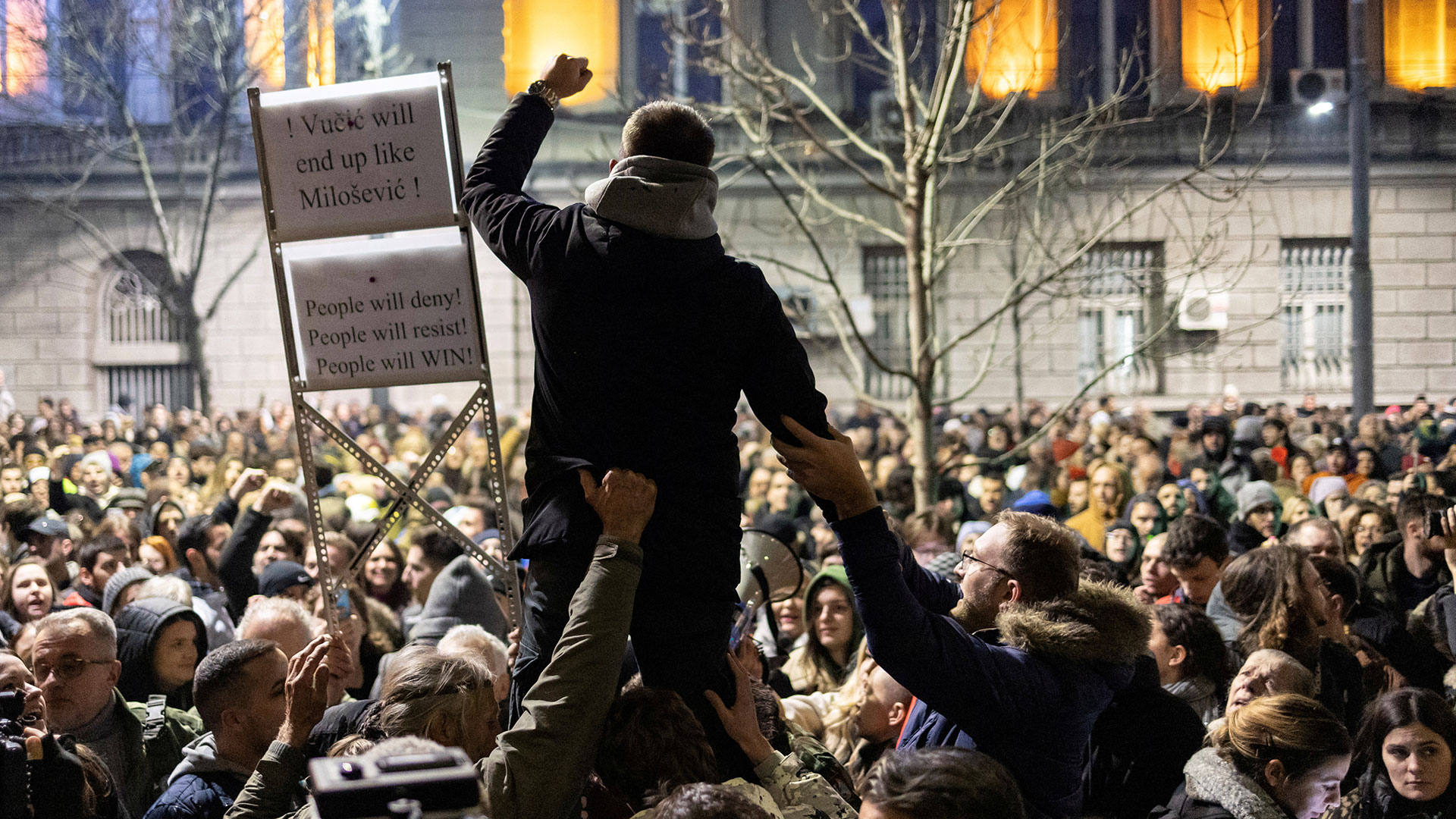 Οι ηγέτες του συνασπισμού «Η Σερβία ενάντια στη βία» εισήλθαν στο κτήριο της εφορευτικής επιτροπής και παρέδωσαν στοιχεία που αποδεικνύουν ότι έγιναν σοβαρές παρατυπίες κατά την εκλογική διαδικασία.