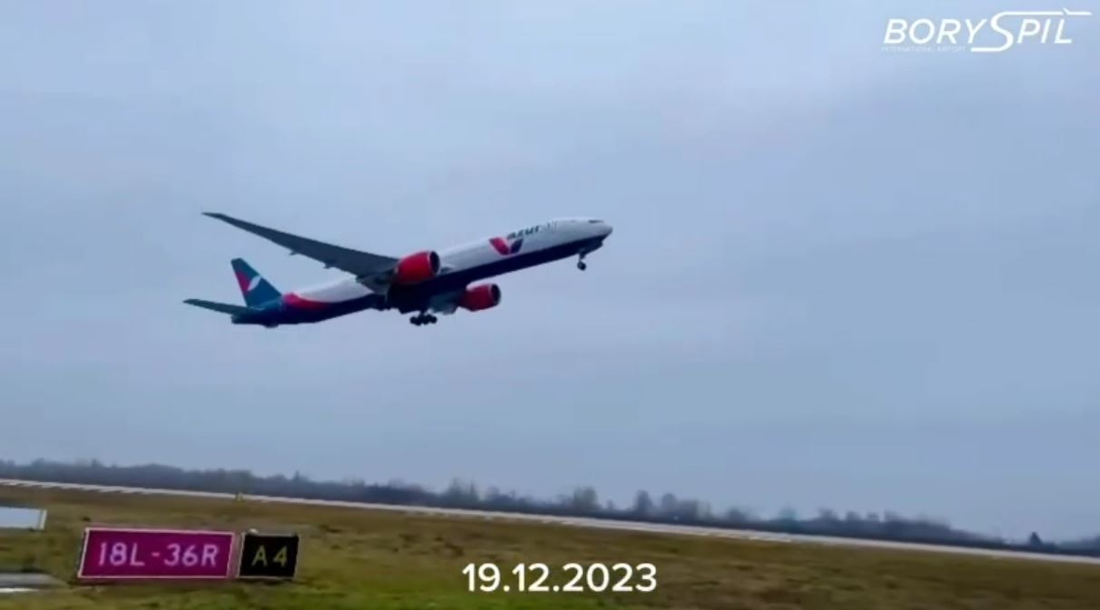 «Μια τεχνική μεταφορά του Boeing 777-300 πραγματοποιήθηκε από το αεροδρόμιο Μπορίσπιλ του Κιέβου (KBP) με προορισμό ένα αεροδρόμιο της Ευρώπης, έπειτα από αίτημα του ουκρανικού αερομεταφορέα Skyline Express», ανέφερε το αεροδρόμιο στη σελίδα του στο Facebook.