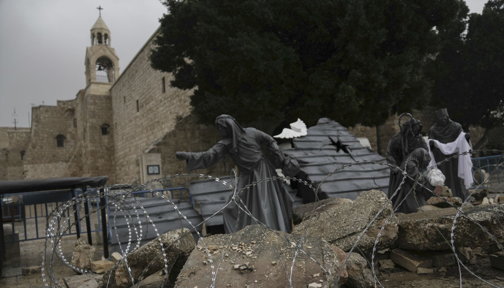 Τα γιορτινά λαμπιόνια και το χριστουγεννιάτικο δέντρο που υπό άλλες συνθήκες θα κοσμούσαν την πλατεία έξω από τον ναό της Γεννήσεως, φέτος λείπουν. Ενώ στη θέση των ξένων ταξιδιωτών και των ντόπιων που γιορτάζουν σε κάποια χριστουγεννιάτικη εκδήλωση βρίσκονται πάνοπλοι άνδρες των παλαιστινιακών δυνάμεων ασφαλείας που περιπολούν την άδεια πλατεία.