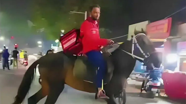 A Zomato delivery man went for the delivery on horse as he couldn’t get the fuel for his vehicle. 😀