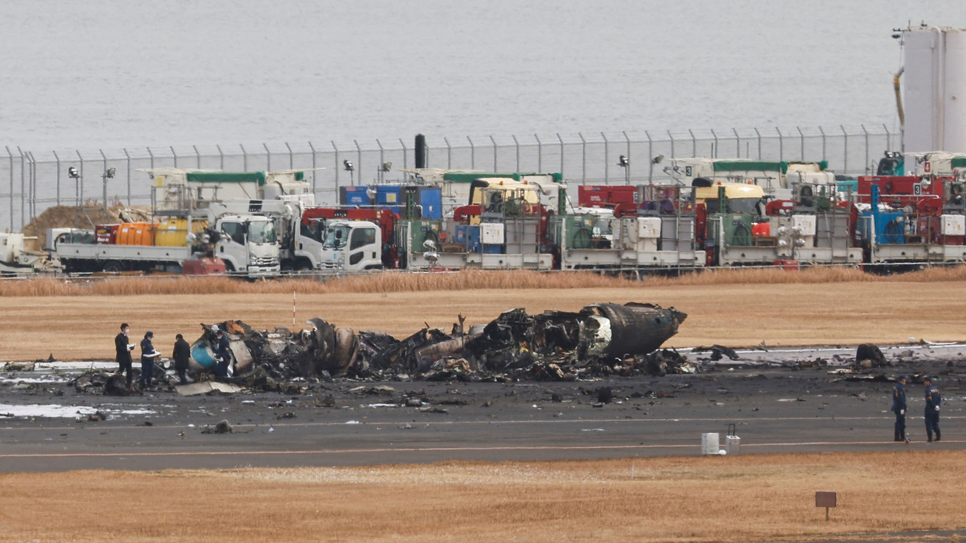 Από τη σύγκρουση προκλήθηκε έκρηξη και το Airbus Α350 της Japan Airlines πήρε φωτιά. Καταστράφηκε ολοσχερώς μετά την απομάκρυνση όλων των επιβατών και των 12 μελών του πληρώματος. Η κατάσβεση της πυρκαγιάς διήρκεσε οκτώ ώρες, σύμφωνα με την πυροσβεστική.