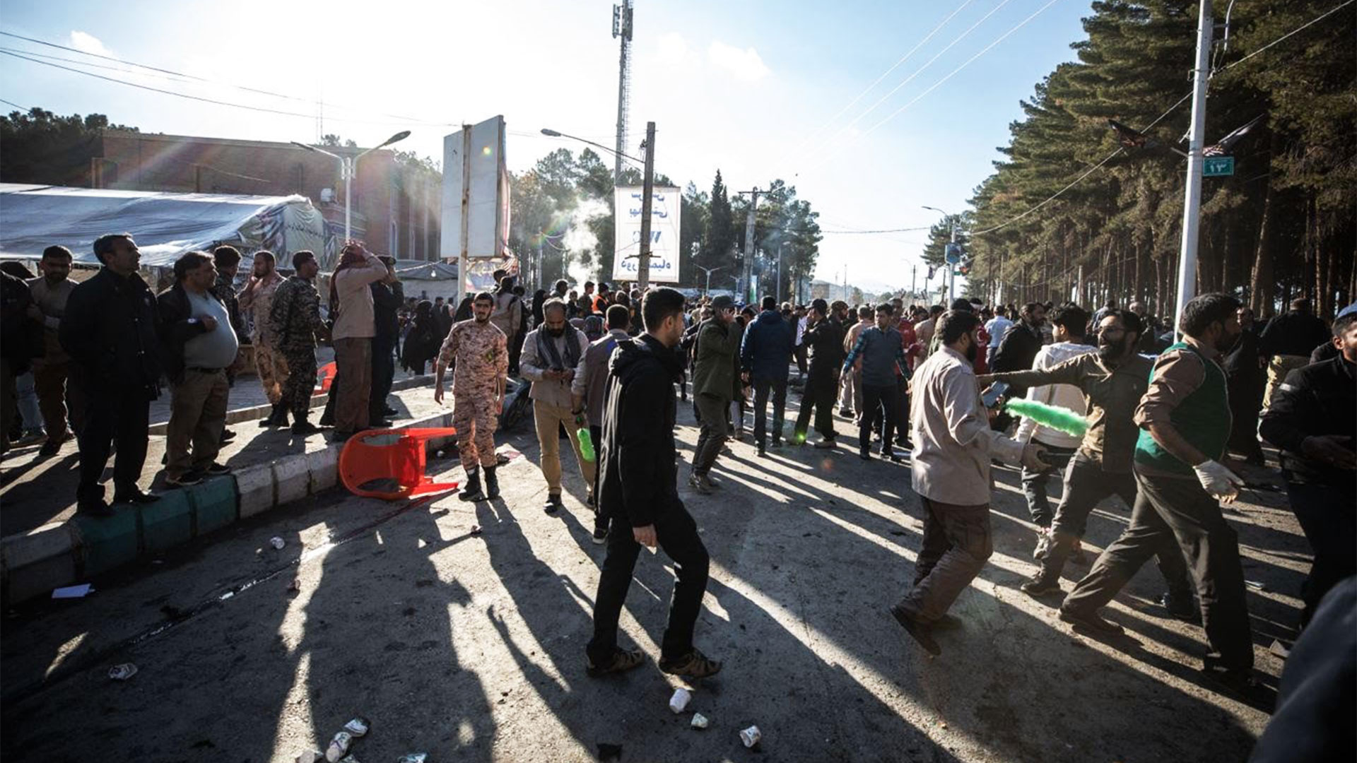 Δύο διαδοχικές εκρήξεις εντός δέκα λεπτών σε εκδήλωση μνήμης για τον δολοφονημένο από τις ΗΠΑ Ιρανό υποστράτηγο Κασέμ Σουλεϊμανί προκάλεσαν τον θάνατο τουλάχιστον 103 ανθρώπων και τον τραυματισμό 211 άλλων. Αν και δεν υπήρχαν μέχρι χθες το βράδυ ενδείξεις εμπλοκής ξένης δύναμης, το συμβάν ενίσχυσε τις ήδη ισχυρές ανησυχίες για επέκταση του πολέμου της Γάζας στην ευρύτερη Μέση Ανατολή, καθώς το Ιράν και οι περιφερειακοί του σύμμαχοι τάσσονται στο πλευρό της Χαμάς, στη σύγκρουσή της με το Ισραήλ.