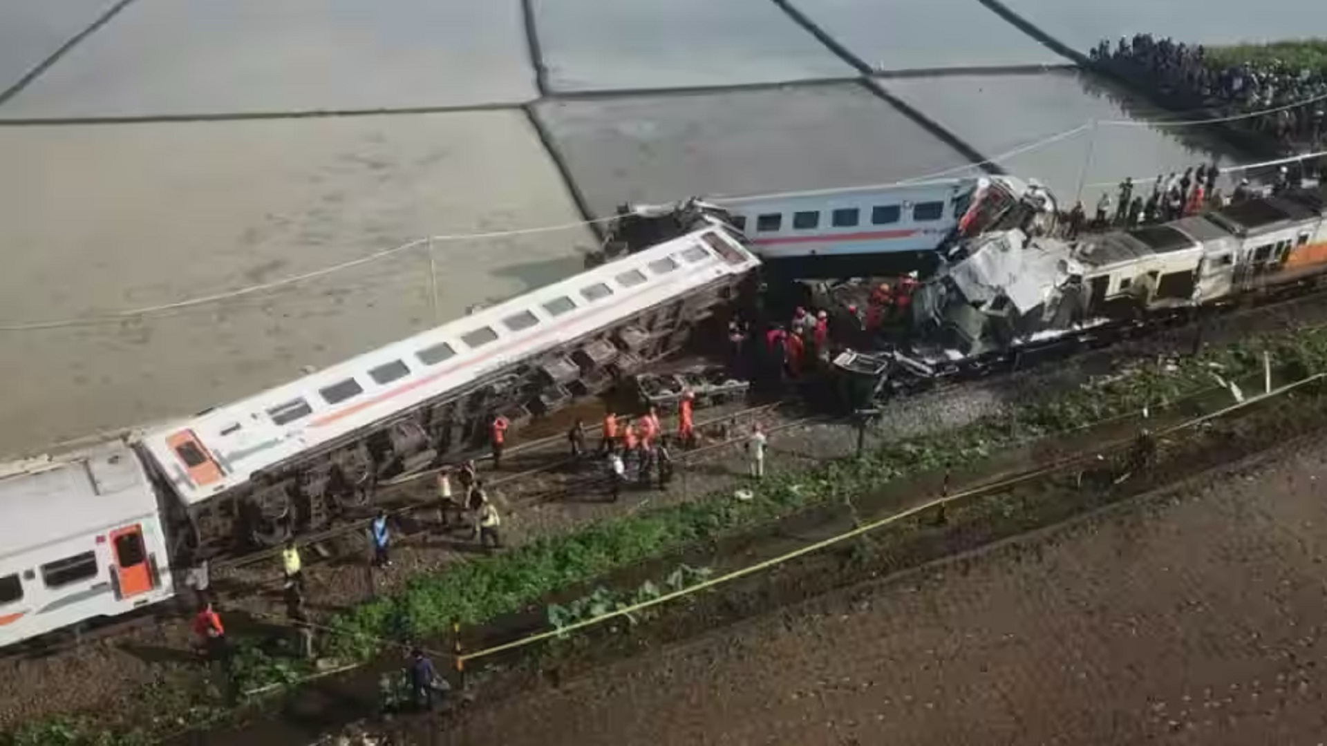 Τα τρένα χτυπήθηκαν μεταξύ τους κοντά σε έναν ορυζώνα και ένα από τα τρένα βυθίστηκε σε αυτόν.