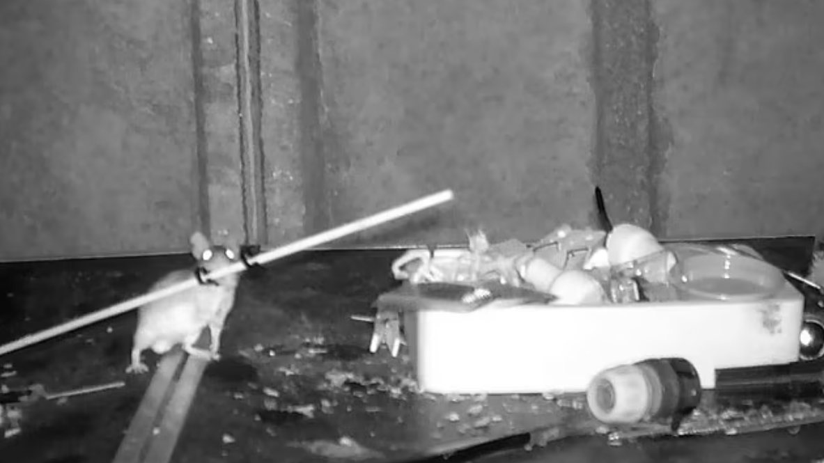 Ο Χόλμπρουκ από το Μπιλθ Γουέλς της Ουαλίας έστησε μια κάμερα παρακολούθησης με νυχτερινή λήψη πάνω στον πάγκο εργασίας του για να δει τι συμβαίνει και έμεινε εμβρόντητος από την εξέλιξη: Οπως ο Ρατατούης στην ομώνυμη ταινία μαγειρεύει κρυφά στην κουζίνα ενός εστιατορίου, έτσι και ο πραγματικός «ξάδελφός» του «συγύριζε» τα βράδια την αποθήκη του 75χρονου.