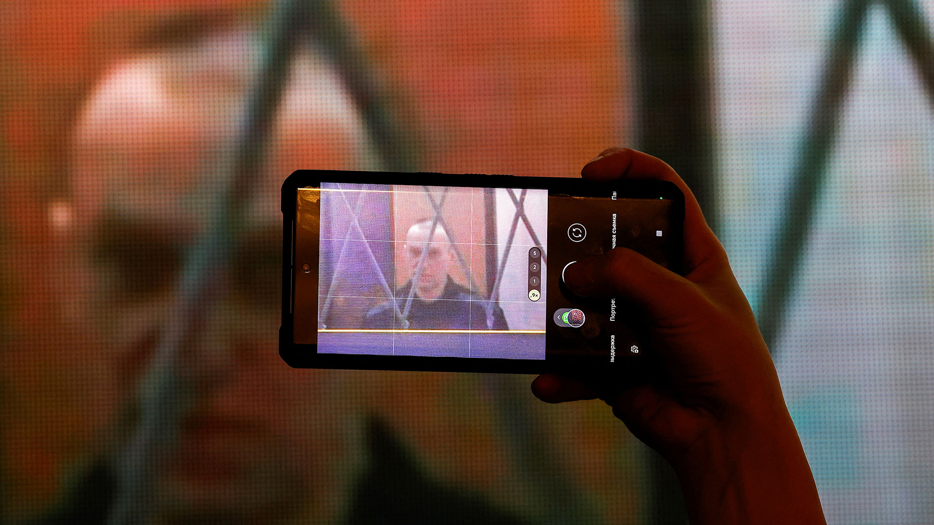 Φορώντας μια μαύρη στολή των φυλακών και στεκόμενος πίσω από τα κάγκελα ενός μικρού, άδειου δωματίου ο 47χρονος Ναβάλνι έδειχνε πολύ αδυνατισμένος αλλά μιλούσε ζωηρά, αναλυτικά και χωρίς σημειώσεις.