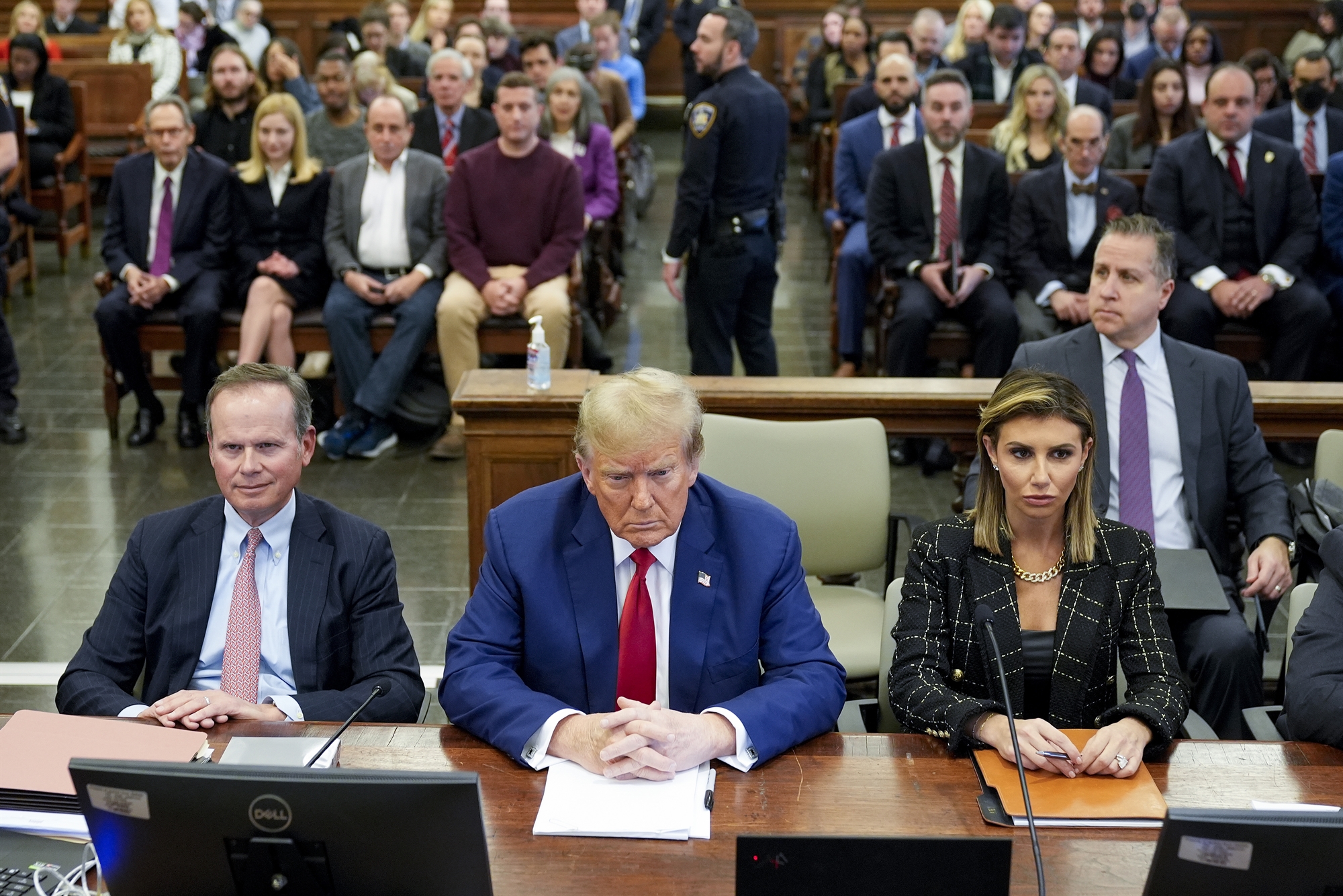 Ο πρόεδρος του δικαστηρίου, Αρθουρ Ενγκορον, έχει ήδη αποφασίσει ότι ο Τραμπ και η εταιρεία του διέπραξαν απάτη, ενώ μένει να αποφανθεί για το ύψος του προστίμου. Η Τζέιμς ζητάει πρόστιμο 370 εκατ. δολαρίων και τον διά βίου αποκλεισμό του Τραμπ και των παιδιών του από την επιχειρηματική ζωή της Νέας Υόρκης. Εχει επίσης ζητήσει τον διορισμό ανεξάρτητου ορκωτού λογιστή για τον έλεγχο του ομίλου Τραμπ και την αυστηρή περιστολή της δανειοληπτικής ικανότητας των επιχειρήσεων του τέως πρόεδρου. Κατά τη διάρκεια του μονολόγου του, ο Τραμπ άρχισε να κατηγορεί την Τζέιμς: «Αυτό που γίνεται εδώ είναι απάτη εις βάρος μου. Δεν είναι δυνατόν να μη με αφήνετε να μιλήσω για την ιδεολογική διάσταση της αγωγής. Είναι το 100% της υπόθεσης». Σε μία προσπάθεια να αντιμετωπίσει το ξέσπασμα του Τραμπ, ο δικαστής Ενγκορον είπε απευθυνόμενος στην υπερασπιστική ομάδα του τέως προέδρου: «Σας παρακαλώ να ελέγξετε τον πελάτη σας». Αντί να υπακούσει, ο Τραμπ συνέχισε ακάθεκτος: «Ξέρω ότι σας είναι πληκτικό. Εχετε τα δικά σας κίνητρα. Δεν αντέχετε να με ακούτε ούτε λεπτό».