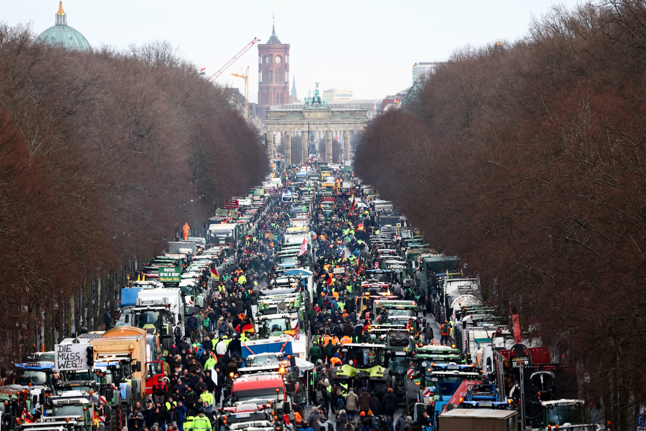 Σε κλοιό διαδηλωτών, φορτηγών και τρακτέρ βρίσκεται η διάσημη Πύλη του Βρανδεμβούργου του Βερολίνου, λόγω διαμαρτυριών.
