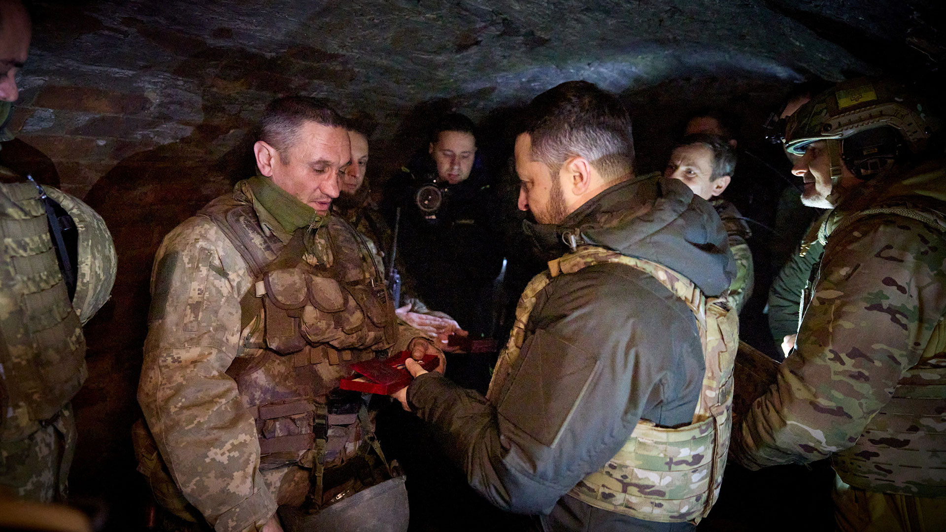 Ο πρόεδρος Βολοντίμιρ Ζελένσκι επισκέφθηκε ουκρανικά στρατεύματα στο νοτιοανατολικό μέτωπο και απένειμε μετάλλια, ανέφερε το γραφείο του εν μέσω έντονων εικασιών ότι ο δημοφιλής επικεφαλής του στρατού πρόκειται σύντομα να αποπεμφθεί.