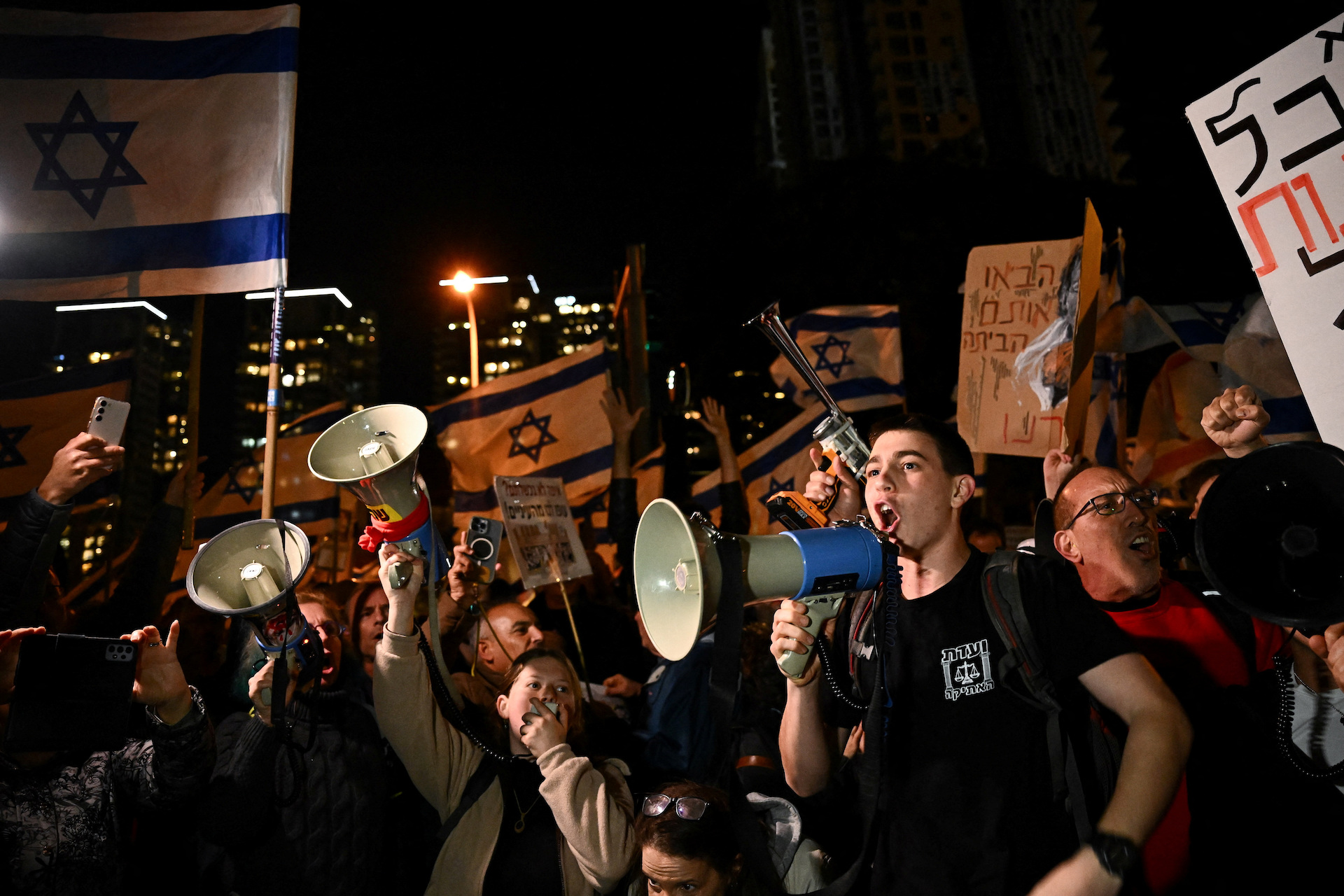 Οι αντικυβερνητικές διαδηλώσεις, που είχαν συγκλονίσει το Ισραήλ για μεγάλο μέρος του 2023, έχουν υποχωρήσει τους τελευταίους μήνες του πολέμου και δεν είναι πια το ίδιο μαζικές. Ωστόσο, διαδηλωτές βγήκαν ξανά στους δρόμους του Τελ Αβίβ σήμερα το βράδυ ζητώντας να διεξαχθούν στη χώρα εκλογές πριν από το 2026 οπότε είναι κανονικά προγραμματισμένες οι επόμενες.