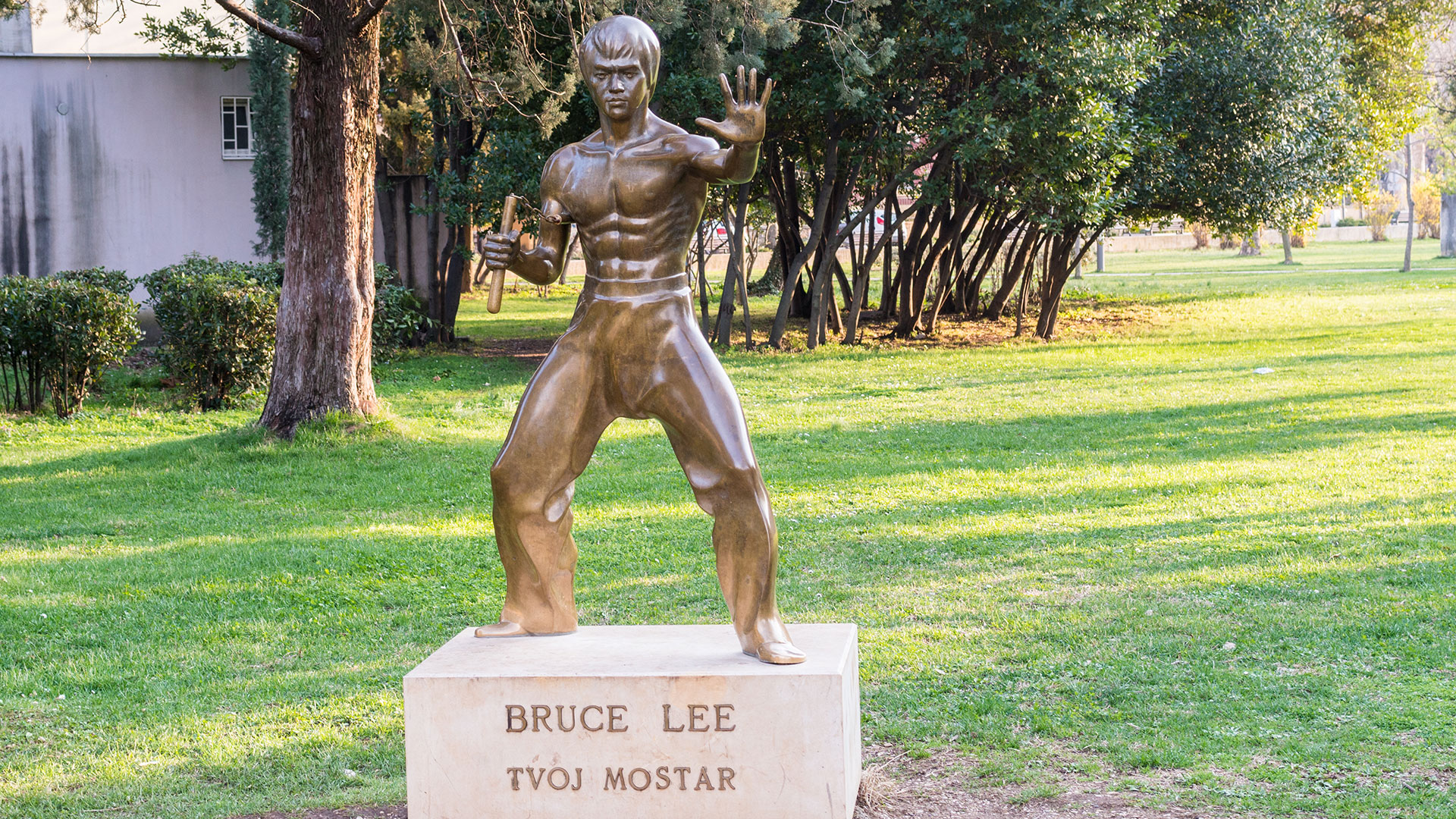 Το άγαλμα του Μπρους Λι τοποθετήθηκε στο κεντρικό πάρκο του Μόσταρ το 2005 με πρωτοβουλία των επικεφαλής της μη κυβερνητικής οργάνωσης «Αστικό Κίνημα – Μόσταρ», νυν βουλευτή Νίνο Ράσπουντιτς και του συγγραφέα Βέζελιν Γκάταλ.