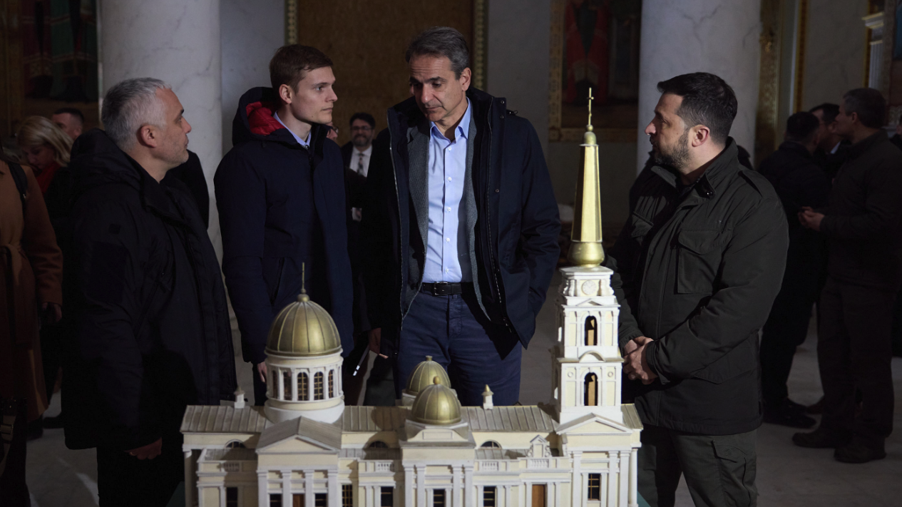 Ο Ζελένσκι αναφέρεται αρχικά στην επίσκεψη που πραγματοποίησε μαζί με τον κ. Μητσοτάκη στον Καθεδρικό Ναό Μεταμόρφωσης στην Οδησσό, «ο οποίος είχε υποστεί σοβαρές ζημιές από ρωσικό πυραυλικό χτύπημα».