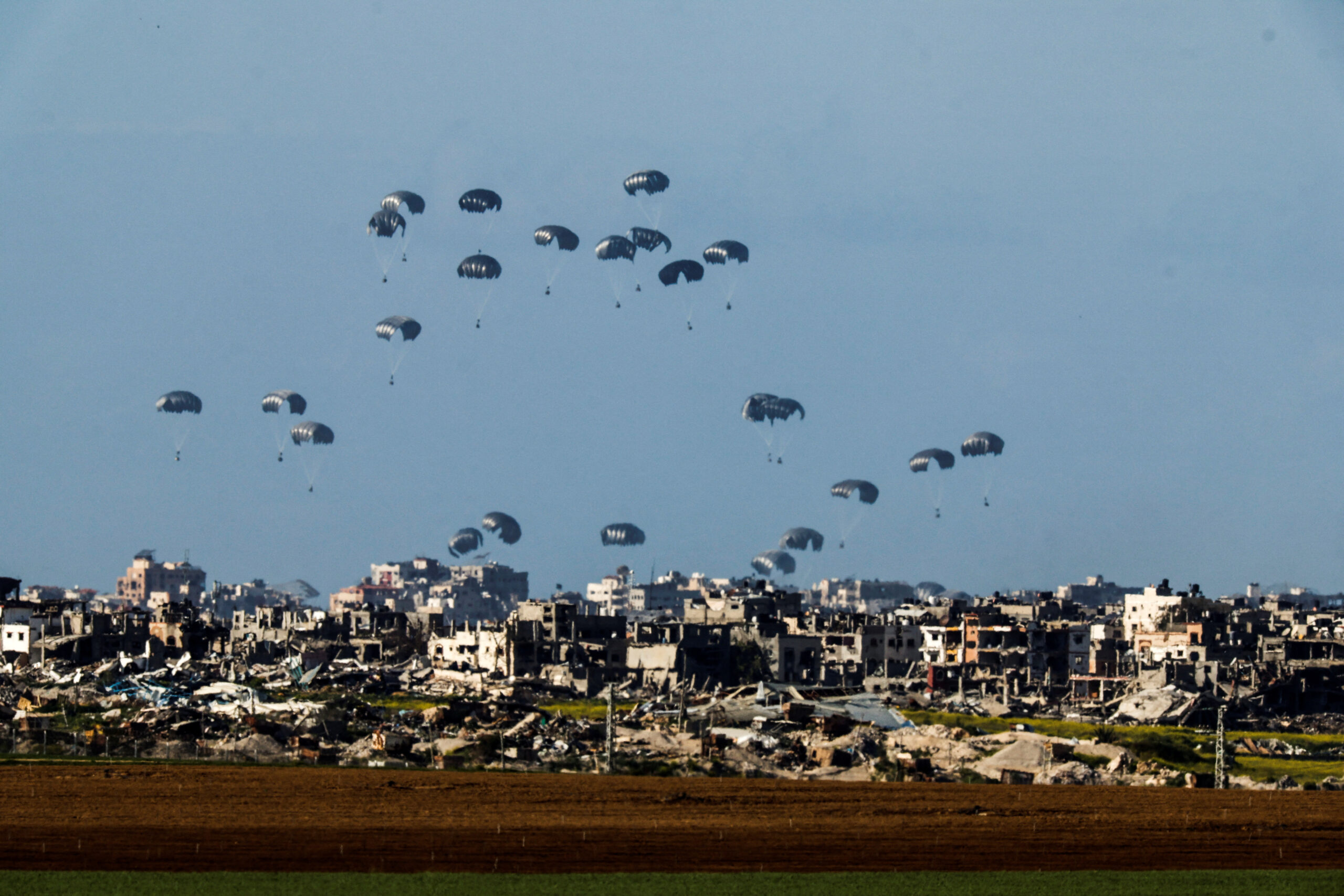 Χιλιάδες απεγνωσμένοι άνθρωποι τρέχουν σε μια παραλία της Λωρίδας της Γάζας προσπαθώντας να φτάσουν όσο πιο κοντά γίνεται σε κιβώτια που πέφτουν από τον ουρανό με αλεξίπτωτα. Πρόκειται για μία από τις επιχειρήσεις διανομής ανθρωπιστικής βοήθειας από αέρος στις οποίες, μεταξύ άλλων, συμμετέχουν και οι Ηνωμένες Πολιτείες. Η πρακτική αυτή έχει γίνει τις τελευταίες ημέρες αντικείμενο σφοδρής κριτικής από διεθνείς οργανισμούς και οργανώσεις κυρίως όσον αφορά την αποτελεσματικότητά της.