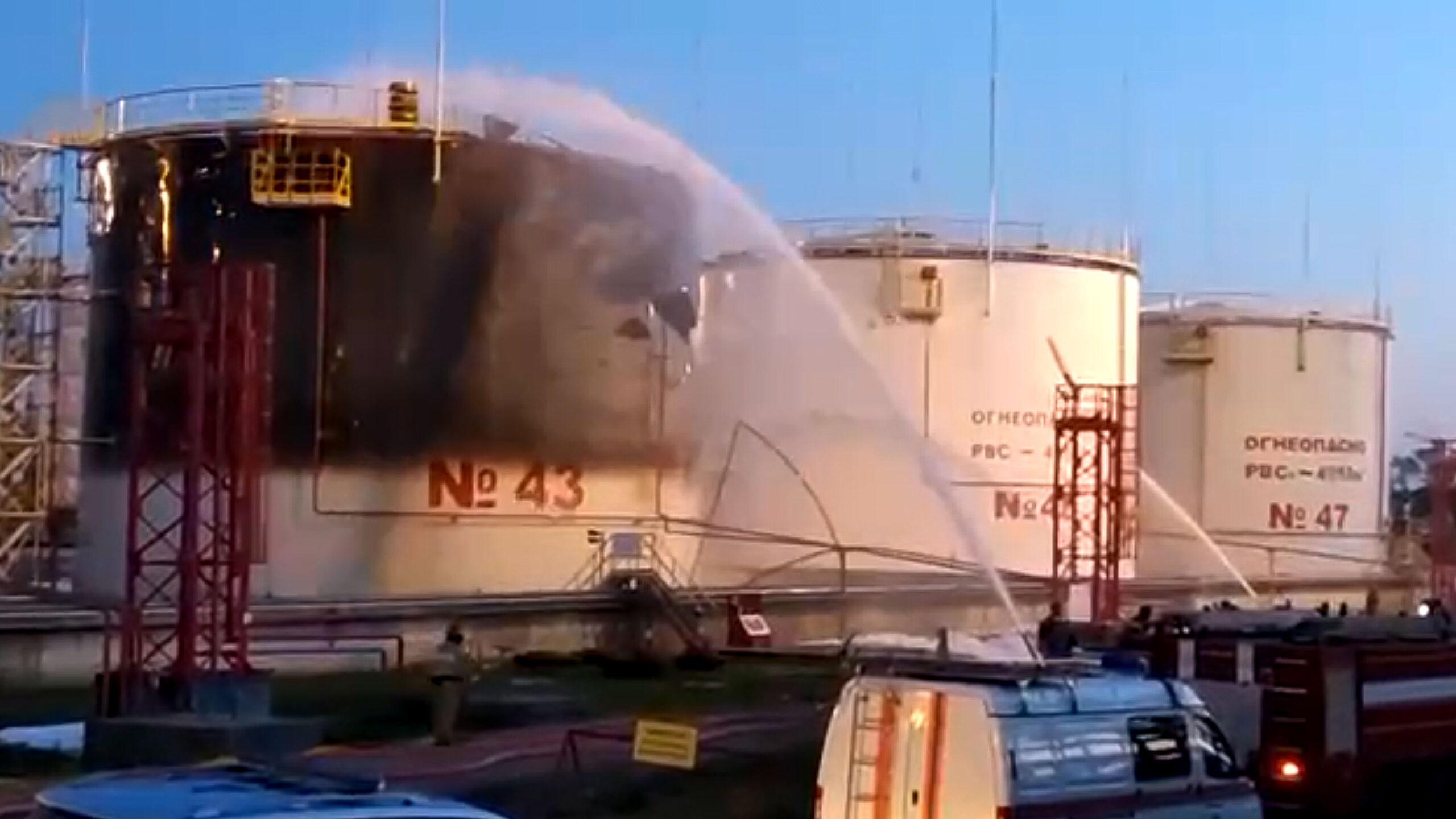«Η πυρκαγιά στην περιοχή του διυλιστηρίου πετρελαίου της Σλαβιάνσκ πλέον κατασβέστηκε πλήρως», διαβεβαίωσε το γενικό αρχηγείο επιχειρήσεων της περιφέρειας Κρασναντάρ.
