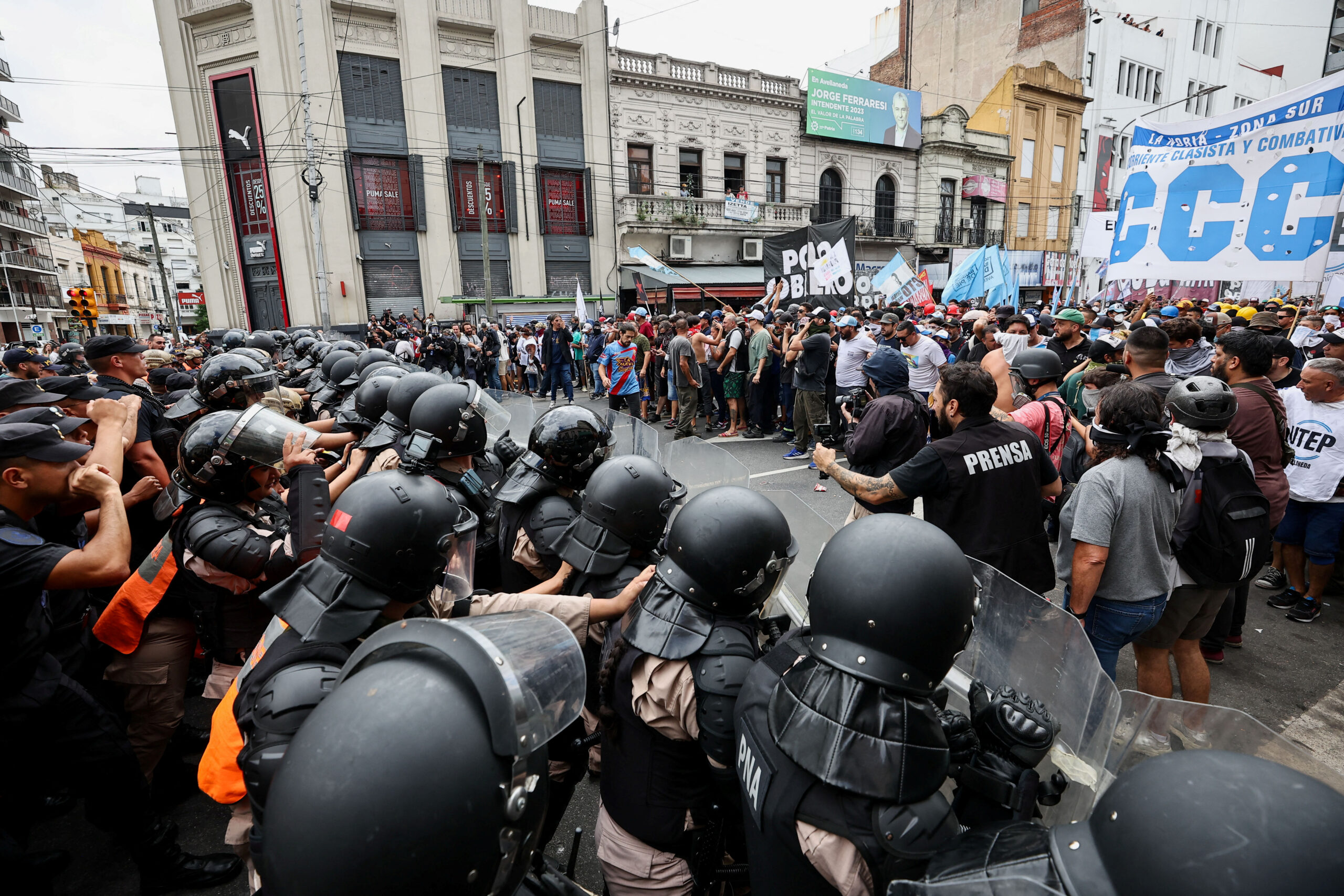 Επανειλημμένες συγκρούσεις ανάμεσα σε αστυνομικούς και διαδηλωτές σημάδεψαν χθες, Δευτέρα, μια ημέρα μαζικών κινητοποιήσεων στην Αργεντινή για την «κατάσταση επισιτιστικής έκτακτης ανάγκης» κaι εναντίον των πολιτικών λιτότητας, καθώς σήμερα συμπληρώνονται εκατό ημέρες του ακραίου φιλελεύθερου προέδρου Χαβιέρ Μιλέι στην εξουσία.