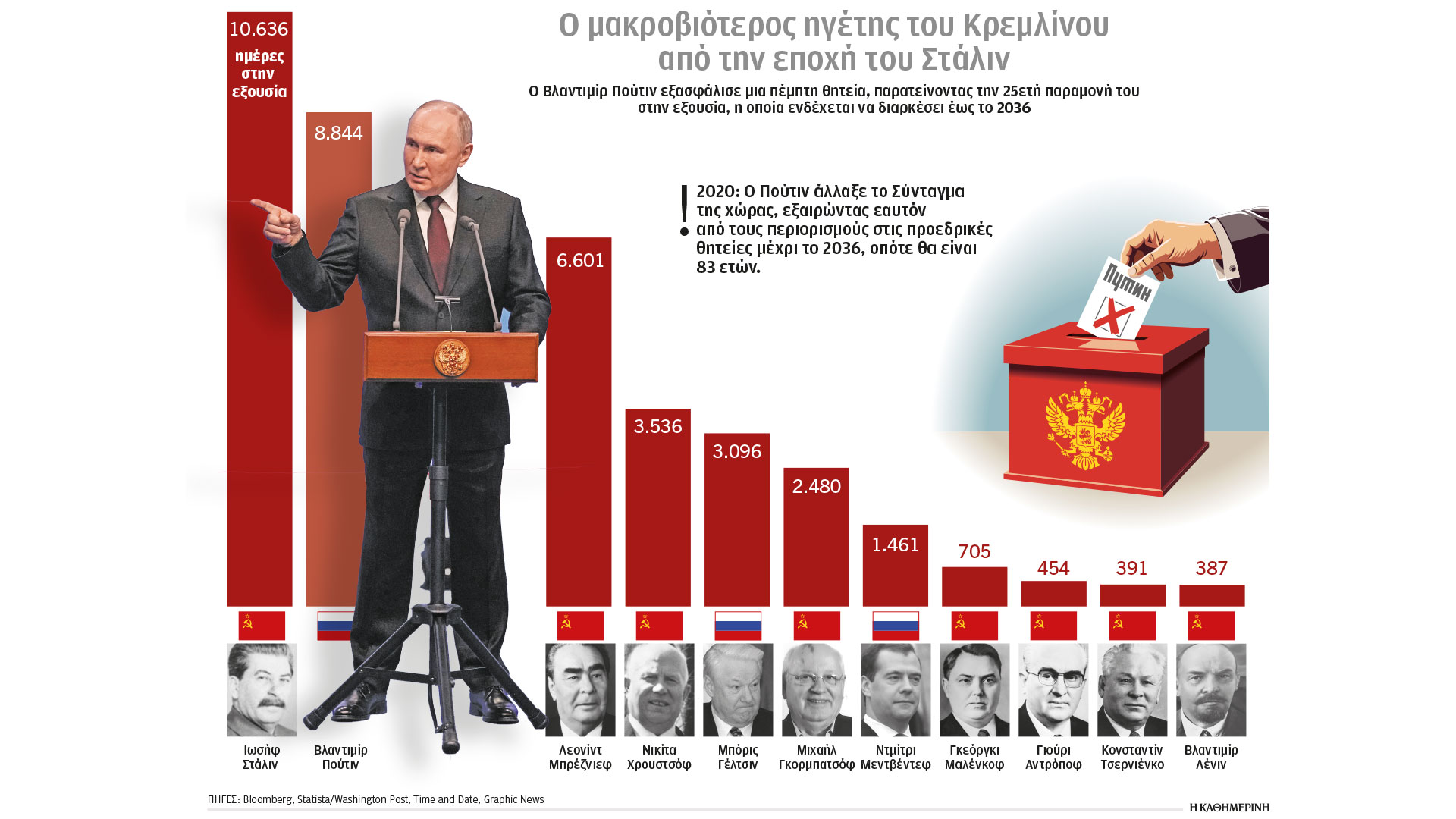 Η πλατεία Λουμπιάνκα, στο κέντρο της Μόσχας, είναι διάσημη (κατ’ άλλους διαβόητη) για το ομώνυμο κτίριο που στέγαζε, επί Σοβιετικής Ενωσης, το αρχηγείο της μυστικής υπηρεσίας KGB και τις φυλακές της. Σε αυτό το κτίριο βρέθηκε χθες ο πιο επιφανής πρώην πράκτορας της υπηρεσίας, Βλαντιμίρ Βλαντιμίροβιτς Πούτιν. Δύο ημέρες μετά τη σαρωτική, όπως αναμενόταν, επικράτησή του στις προεδρικές εκλογές που του εξασφάλισε και πέμπτη θητεία, ο ισχυρός άνδρας της Ρωσίας μίλησε σε στελέχη της Ομοσπονδιακής Υπηρεσίας Ασφαλείας (FSB), άμεσου διαδόχου της KGB, στέλνοντας μηνύματα προς πολλές κατευθύνσεις.