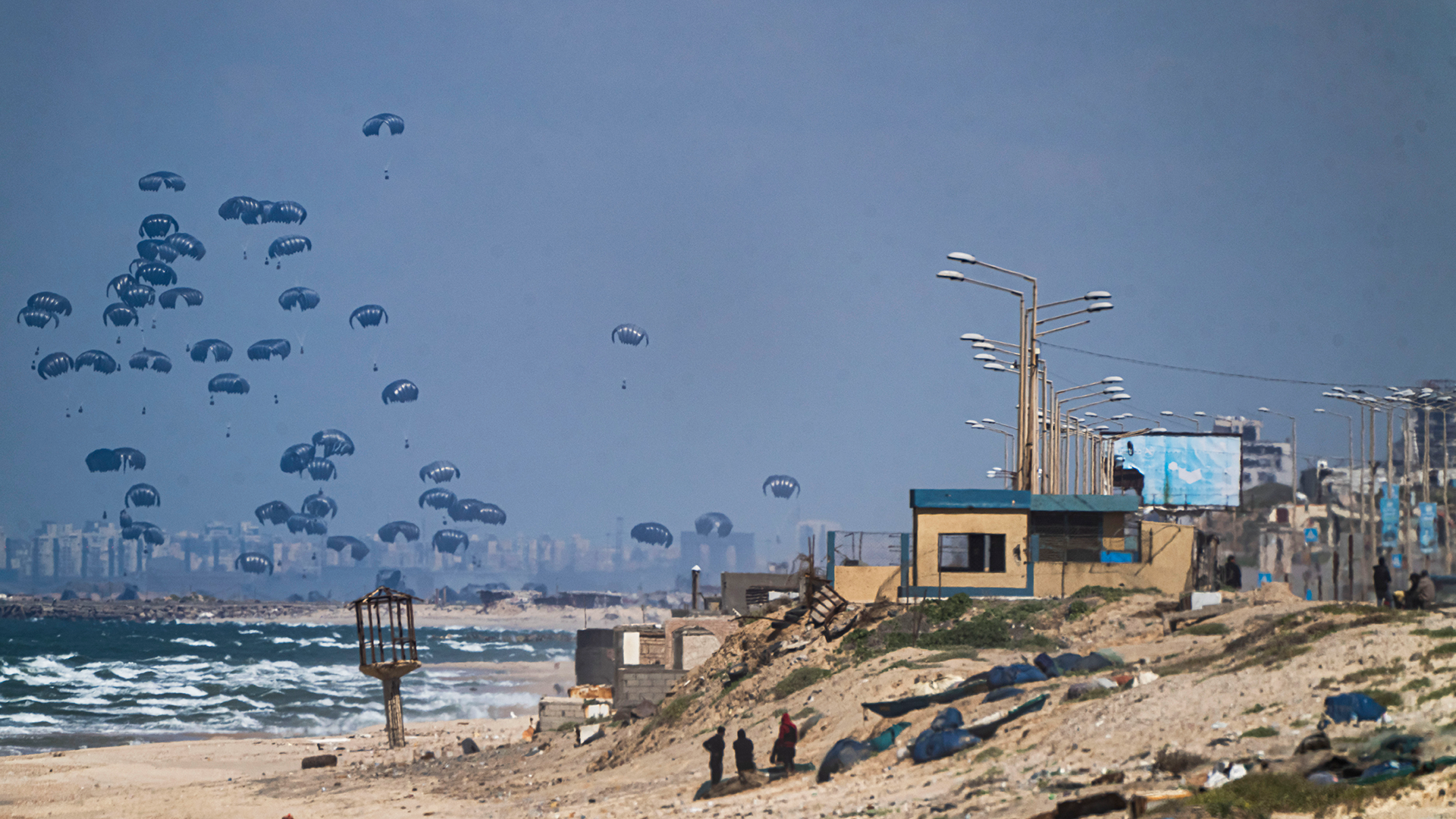 Η άμεση απειλή γενικευμένου λιμού στη Γάζα και ο περιορισμός στο ελάχιστο των χερσαίων ροών ανθρωπιστικής βοήθειας από τον ισραηλινό στρατό οδήγησαν τις ΗΠΑ, τη Βρετανία, την Ιορδανία και άλλες χώρες να προσφύγουν σε ρίψεις πακέτων τροφίμων από αέρος. Ωστόσο είναι πολύ συζητήσιμο αν το όφελος είναι μεγαλύτερο από το κακό.