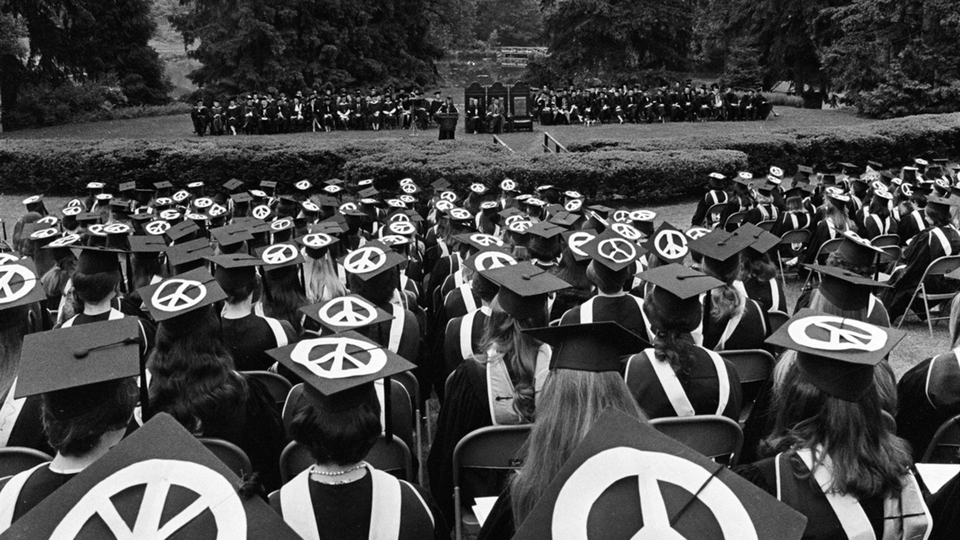 Ακόμη και στις αρχές της δεκαετίας του 1970, το κάποτε γεμάτο βαρύ συμβολισμό σήμα της ειρήνης είχε καταστεί ανώδυνο σημάδι αστικού τρόπου ζωής και μοτίβο του ενδυματολογικού συρμού, ανάλογο με το χαμογελαστό πρόσωπο smiley face.
