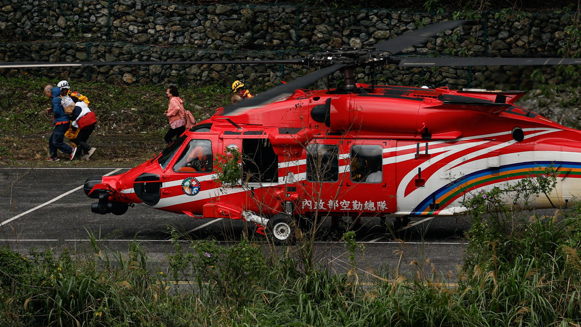 Ελικόπτερα συνέχισαν το Σάββατο να απομακρύνουν δεκάδες τουρίστες που είχαν εγκλωβιστεί εδώ και τέσσερις ημέρες, λόγω κατολισθήσεων στο ανατολικό τμήμα της Ταϊβάν, που συγκλονίστηκε από τον ισχυρό σεισμό των 7,4 Ρίχτερ.