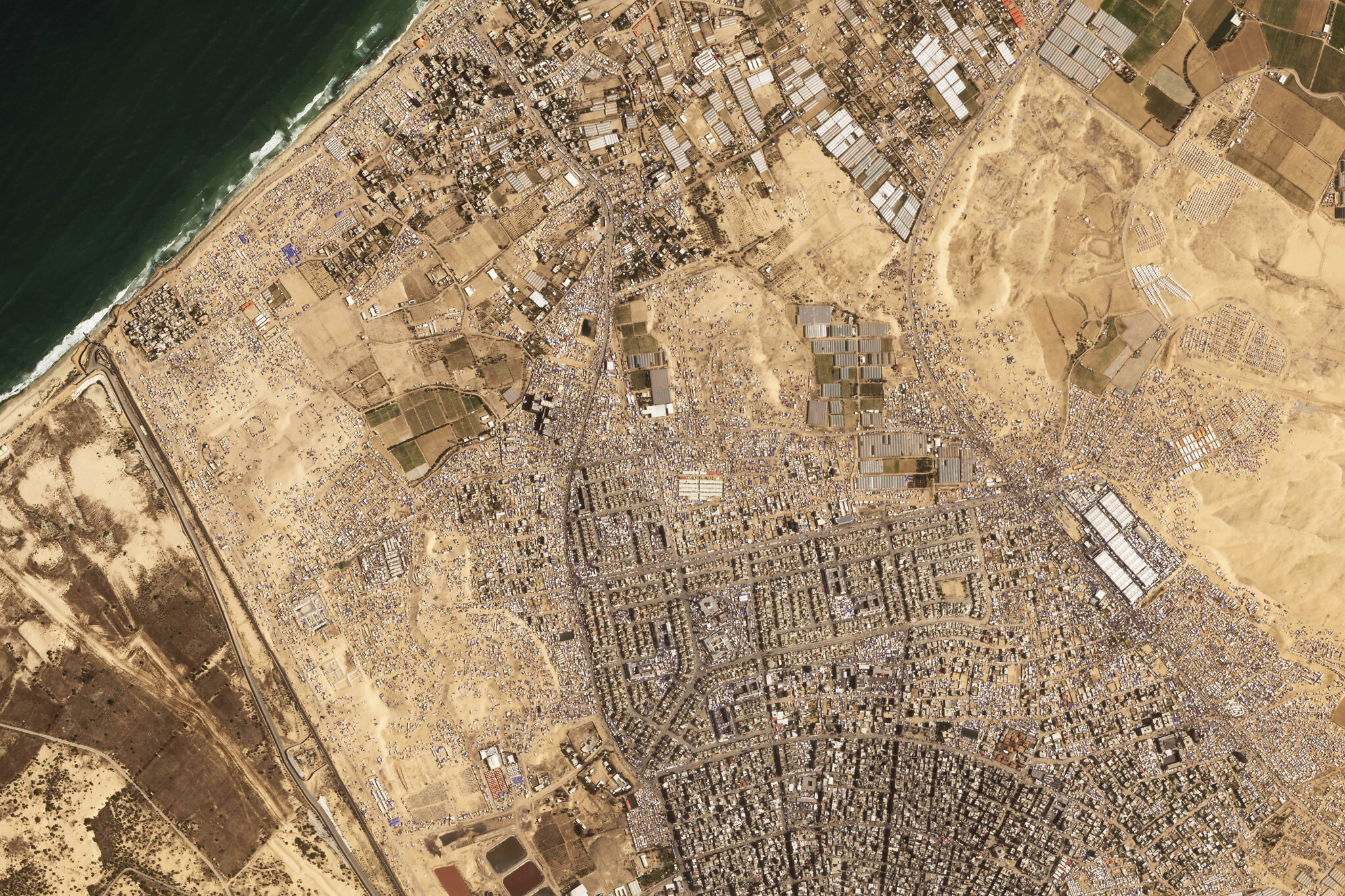 Δορυφορικές φωτογραφίες που αναλύθηκαν από το Associated Press δείχνουν νέο καταυλισμό να έχει αναπτυχθεί κοντά στην περιοχή Χαν Γιουνίς στη νότια Λωρίδα της Γάζας, καθώς ο ισραηλινός στρατός φέρεται να προετοιμάζεται για επίθεση στην πόλη Ράφα.