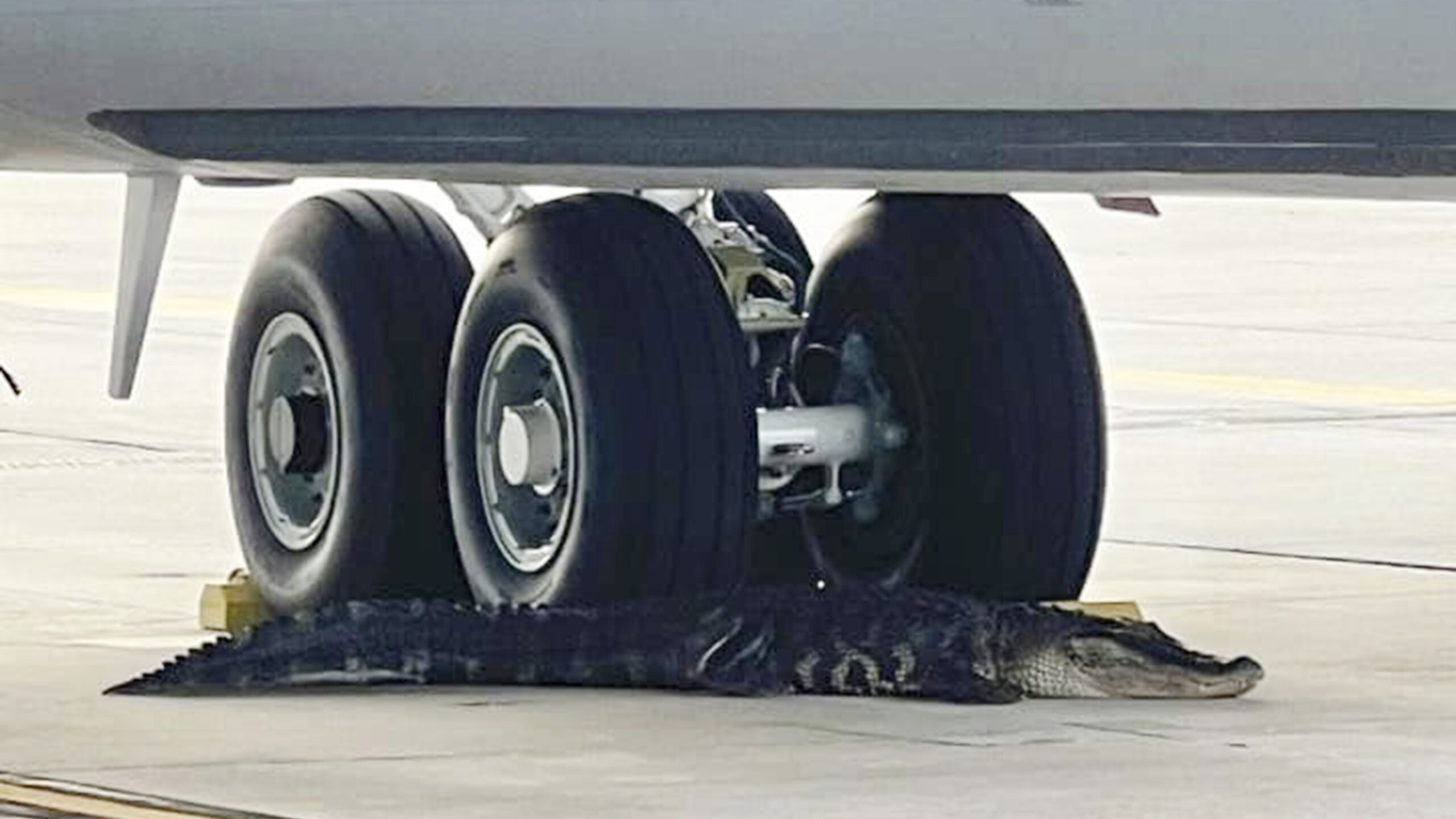 Το πρωί της Δευτέρας, στελέχη της βάσης εντόπισαν έναν τεράστιο αλιγάτορα κουρνιασμένο στο σύστημα προσγείωσης ενός αεροσκάφους εναέριου ανεφοδιασμού KC-135.