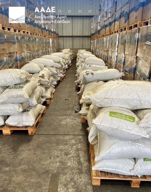 - 500 σάκοι μεικτού βάρους 10 τόνων και 500 κιλών, που περιείχαν λίπασμα αναμεμειγμένο με τρίμματα φύλλων ακατέργαστης κοκαΐνης.
