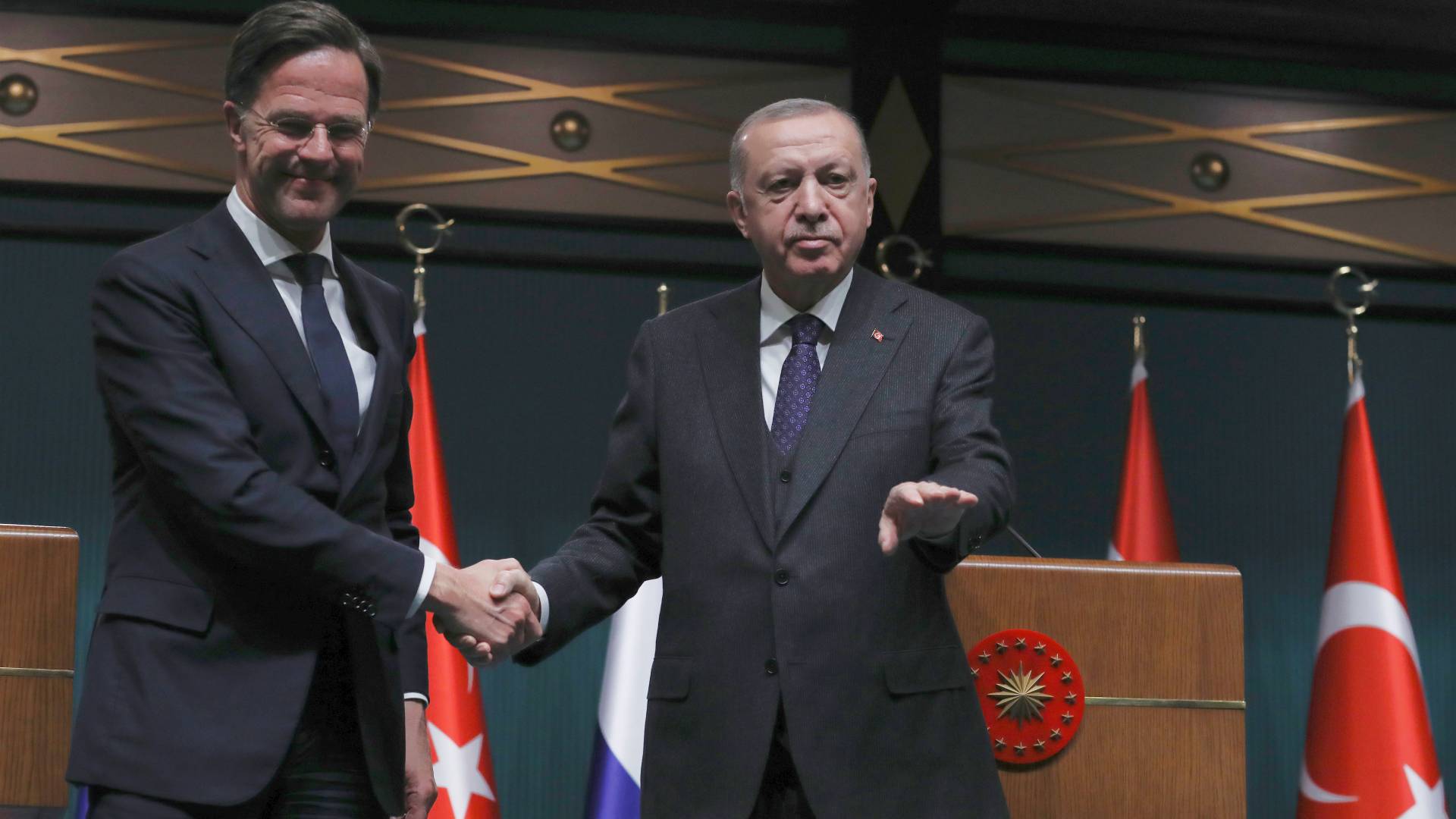 Στην από κοινού συνέντευξη Τύπου με τον Ρετζέπ Ταγίπ Ερντογάν, ο Ολλανδός πρωθυπουργός δήλωσε ότι η νότια πτέρυγα του ΝΑΤΟ χρειάζεται την Τουρκία και την ηγεσία της. «Η νότια πτέρυγα του ΝΑΤΟ χρειάζεται την Τουρκία όσον αφορά τη σταθερότητα ολόκληρης της περιοχής και τις ευρύτερες διατλαντικές σχέσεις», δήλωσε ο Ρούτε, τονίζοντας επίσης πως «η Τουρκία είναι ένας πολύ σημαντικός σύμμαχος στο ΝΑΤΟ. Μετά τις ΗΠΑ, η Τουρκία αντιπροσωπεύει τη δεύτερη μεγαλύτερη στρατιωτική δύναμη στο ΝΑΤΟ. Η Τουρκία είναι μια χώρα που βρίσκεται σε μια δύσκολη περιοχή, σε μια γεωγραφία με δύσκολους γείτονες».