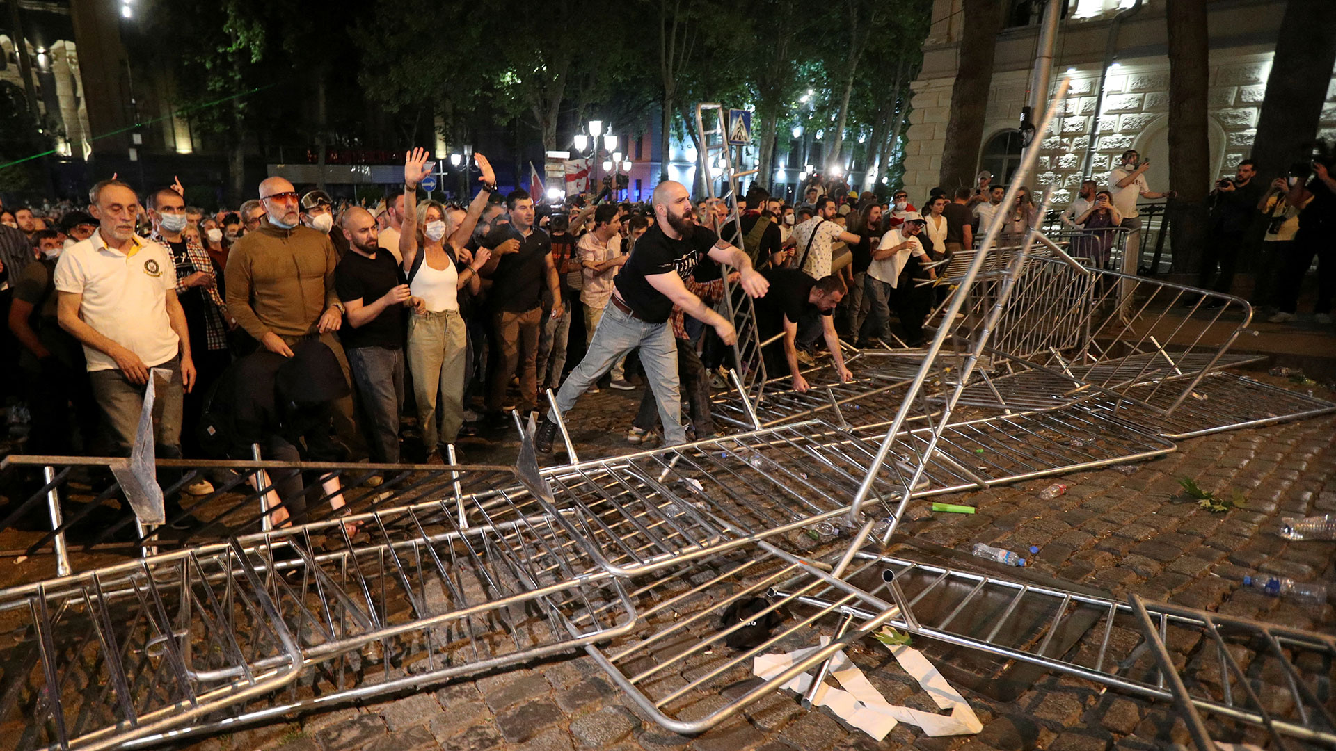 Δυτικοί πολιτικοί και διπλωμάτες ζήτησαν να σταματήσει η αυξανόμενη βία στη Γεωργία, αφού οι δυνάμεις ασφαλείας χρησιμοποίησαν κανόνια νερού, δακρυγόνα, χειροβομβίδες κρότου λάμψης και σφαίρες από καουτσούκ κατά τη διάρκεια της νύχτας για να διαλύσουν μια ειρηνική διαδήλωση κατά του νομοσχεδίου περί «ξένης επιρροής».