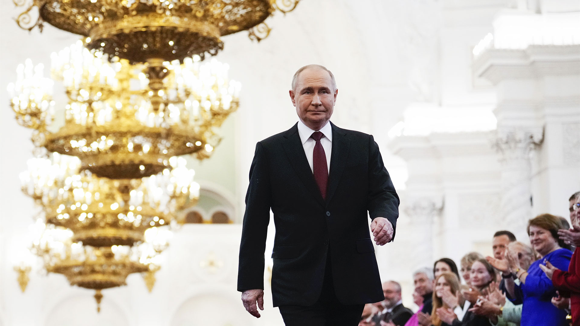 «Το να κυβερνώ τη Ρωσία, μια χώρα 140 εκατ. ανθρώπων, είναι για μένα μεγάλη τιμή, ένα ιερό καθήκον», δήλωσε ο μακροβιότερος ένοικος του Κρεμλίνου μετά τον Ιωσήφ Στάλιν. Στο ξεκίνημα της ομιλίας που εκφώνησε ενώπιον 2.500 προσκεκλημένων απέτισε φόρο τιμής στους «ήρωες» του πολέμου στην Ουκρανία, προτού στείλει μηνύματα αποφασιστικότητας προς τις ΗΠΑ και την Ευρώπη.