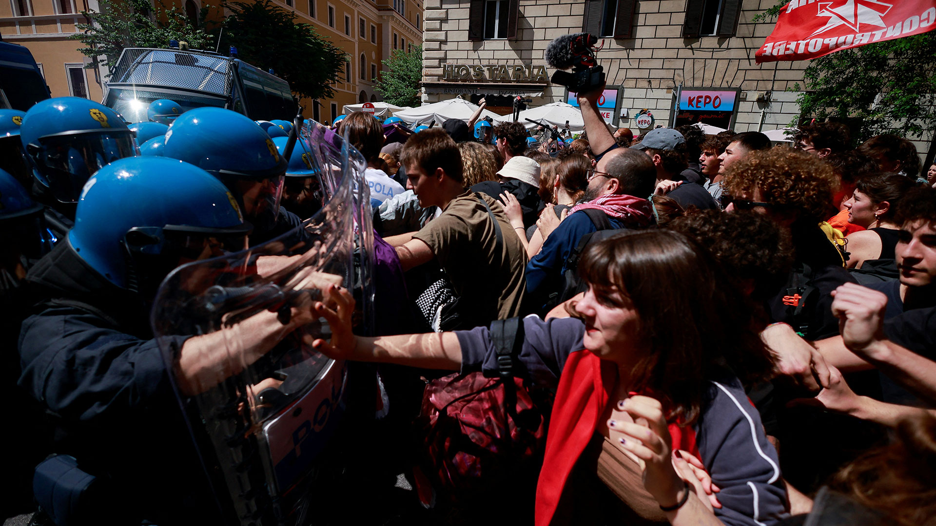 Συγκρούσεις της αστυνομίας με φοιτητές και μαθητές σημειώθηκαν την Παρασκευή στη Ρώμη, έξω από μέγαρο όπου βρισκόταν σε εξέλιξη συνέδριο με θέμα την αντιμετώπιση της υπογεννητικότητας.