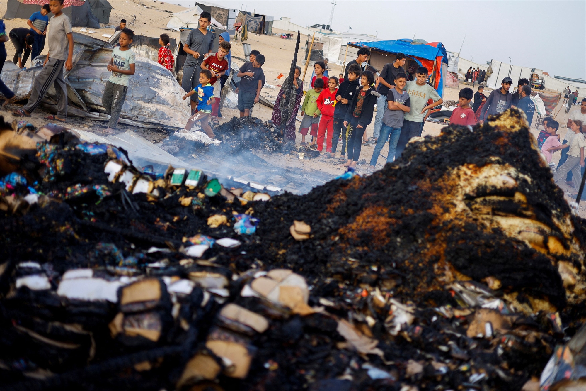 Τον αποτροπιασμό του για το συμβάν εξέφρασε ο Γάλλος πρόεδρος Εμανουέλ Μακρόν, τονίζοντας ότι αποδείχθηκε πως «δεν υπάρχουν στη Ράφα ασφαλείς ζώνες για τους Παλαιστίνιους αμάχους» και ζήτησε άμεση κατάπαυση του πυρός. «Το Ισραήλ διαχέει το μίσος, εμπεδώνει το μίσος που θα εμπλέξει τα παιδιά και τα εγγόνια του», σχολίασε ο Ιταλός υπουργός Αμυνας Γκίντο Κροζέτο, η κυβέρνηση του οποίου τασσόταν μέχρι πρότινος αναφανδόν στο πλευρό του Ισραήλ. Τον άμεσο τερματισμό της εισβολής στη Ράφα ζήτησε η ισπανική κυβέρνηση, κάτι που είχε αξιώσει την Παρασκευή και το Διεθνές Δικαστήριο του ΟΗΕ.