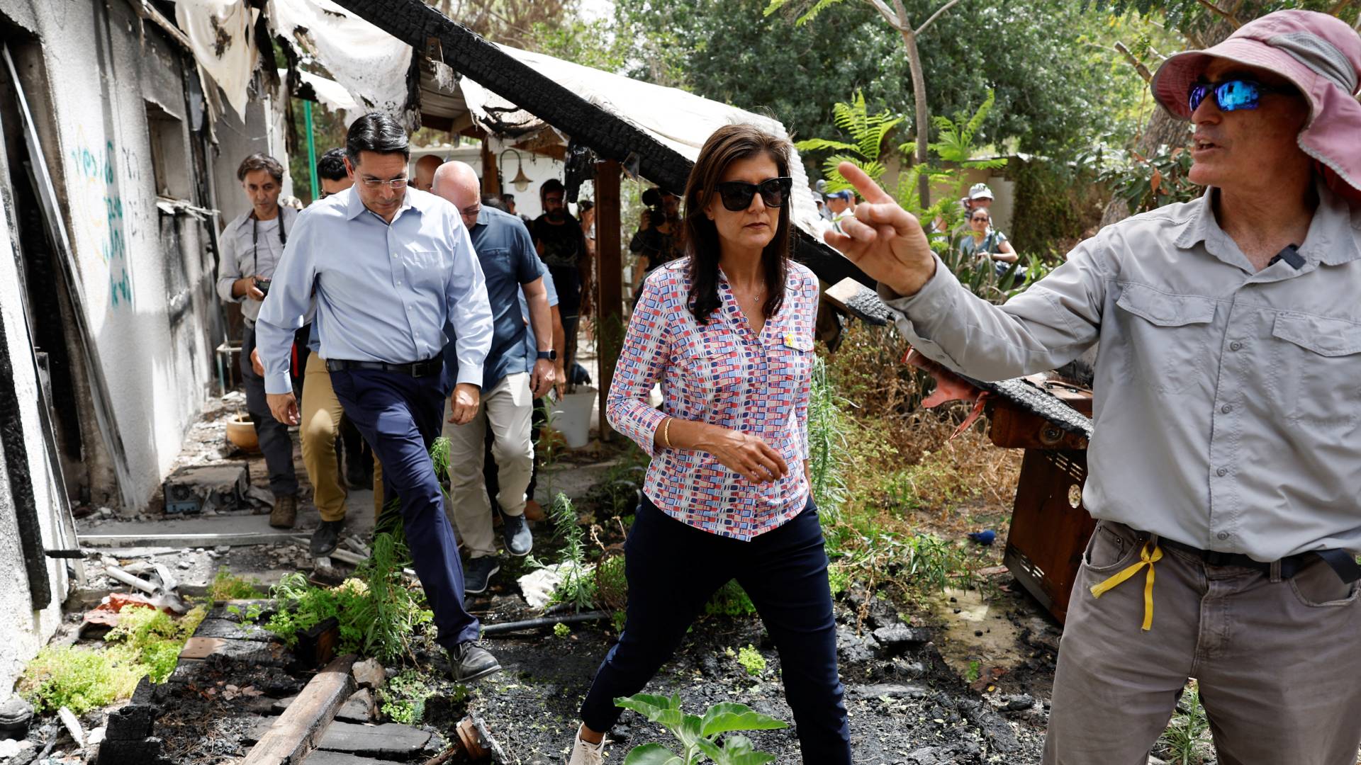Η ατυχήσασα υποψήφια για το χρίσμα των Ρεπουμπλικανών, Νίκι Χέιλι, φωτογραφήθηκε καθώς έγραφε «αποτελειώστε τους» πάνω σε ισραηλινή οβίδα, κατά τη διάρκεια επίσκεψής της στο βόρειο Ισραήλ, κοντά στα σύνορα με τον Λίβανο, στιγμιότυπο που δημοσιοποίησε μέσω X Ισραηλινός βουλευτής.