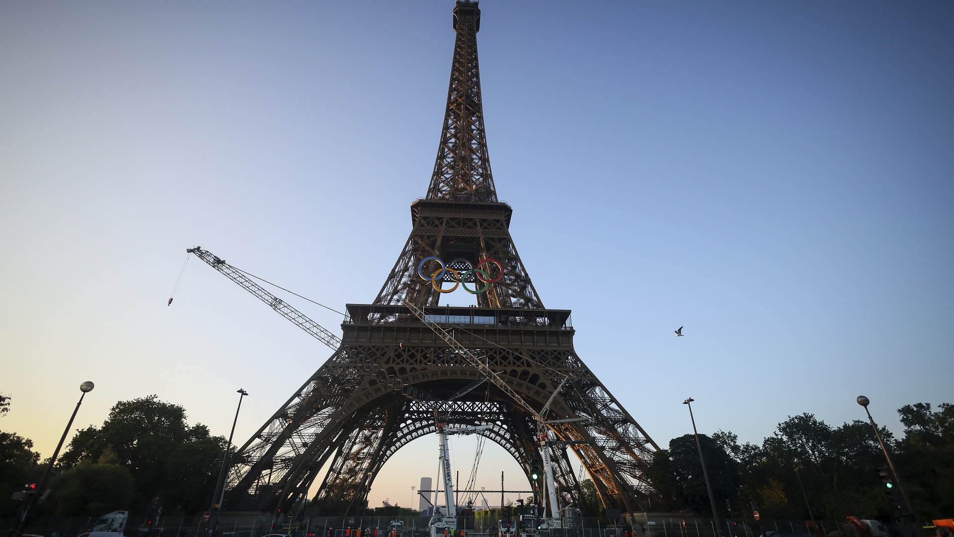 Οι διοργανωτές των Ολυμπιακών Αγώνων του Παρισιού παρουσίασαν σήμερα, Παρασκευή, μια κατασκευή με τους πέντε ολυμπιακούς κύκλους που τοποθετήθηκαν στον Πύργο του Αϊφελ, καθώς η γαλλική πρωτεύουσα μετρά πλέον 50 ημέρες μέχρι την έναρξη των θερινών αγώνων.