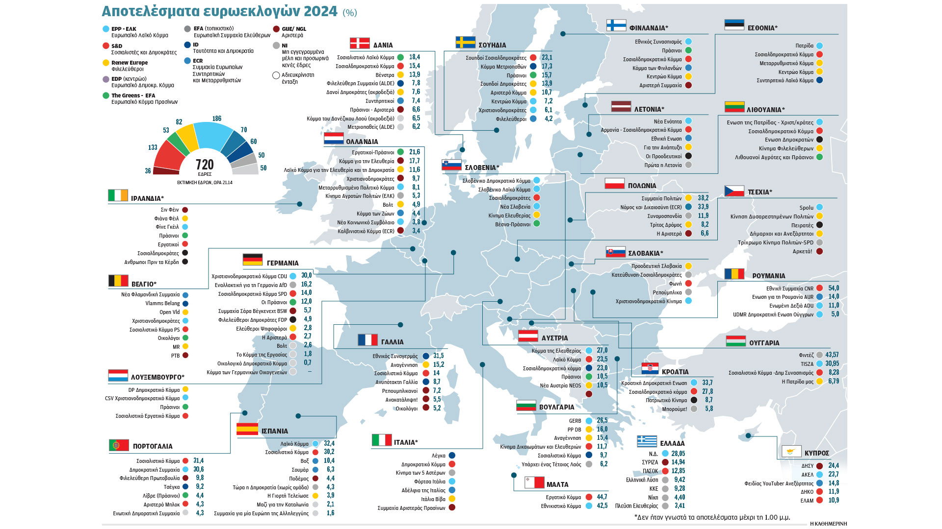 Επί της ουσίας, εάν το φιλοευρωπαϊκό κέντρο –που ενισχύθηκε και με τη συμμετοχή των Ευρωπαίων πολιτών που έφτασε το 51%, λίγο παραπάνω από το 2019– συγκροτήσει «μεγάλο συνασπισμό», ελάχιστη επιρροή θα έχουν δυνάμεις των άκρων κατά την επόμενη πενταετία εντός του Ευρωκοινοβουλίου.