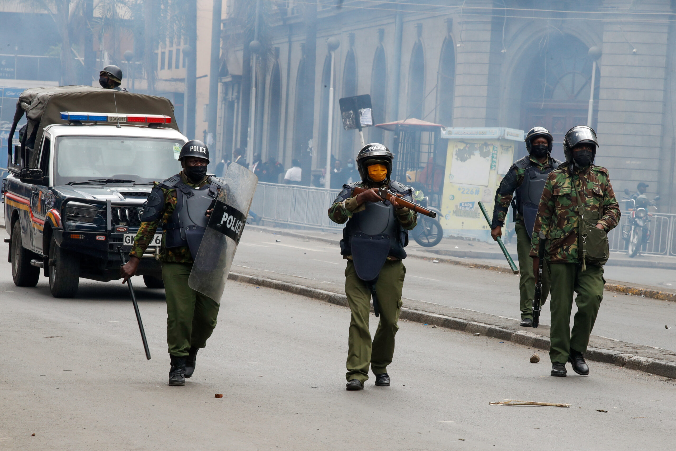 Στους δρόμους της πρωτεύουσας Ναϊρόμπι, αστυνομικοί και στρατιώτες πραγματοποιούσαν περιπολίες την Πέμπτη, ενώ απέκλεισαν την πρόσβαση στο προεδρικό μέγαρο.
