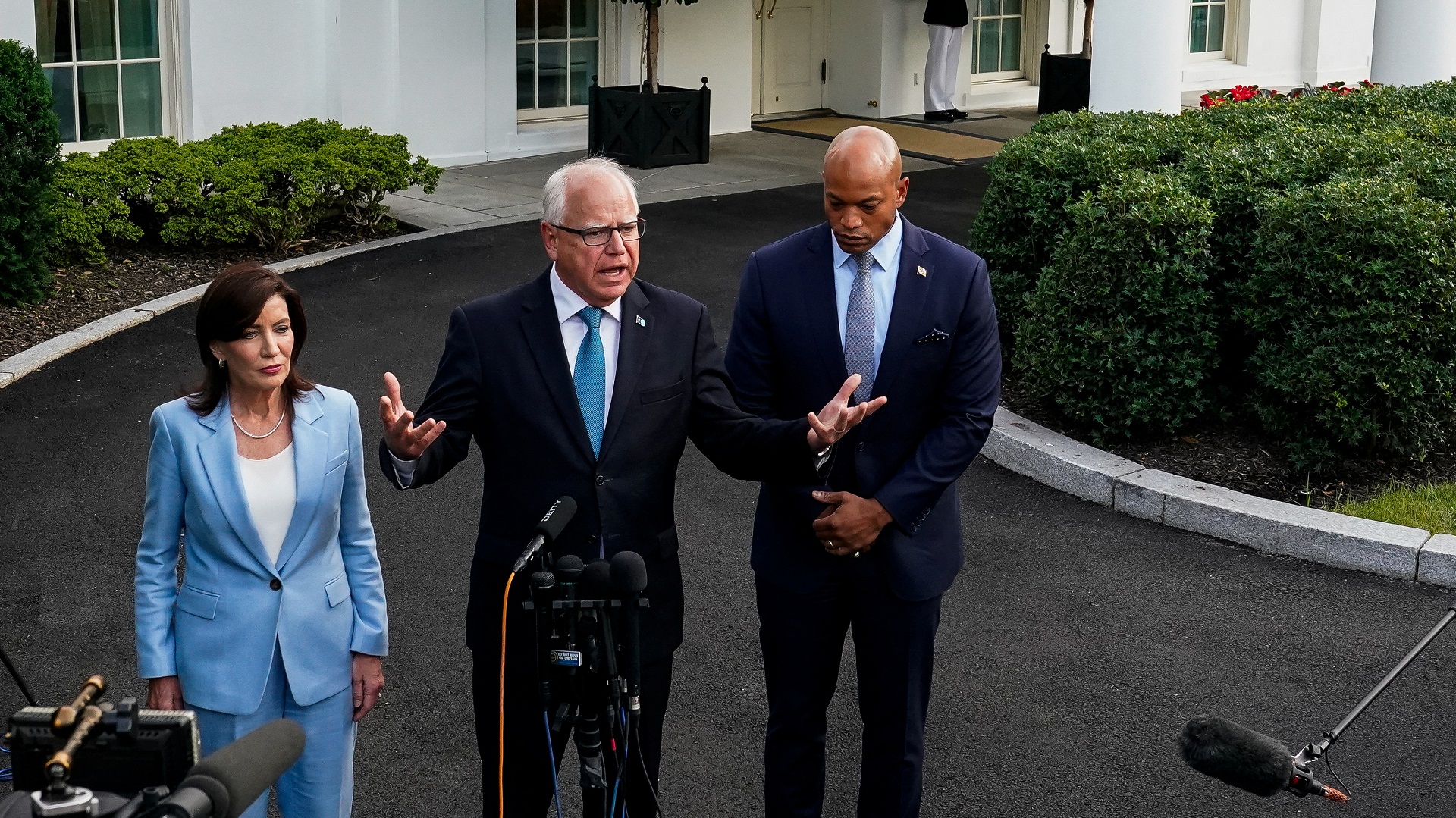 Στη συνάντηση με τον πρόεδρο Τζο Μπάιντεν και την αντιπρόεδρο Κάμαλα Χάρις στον Λευκό Οίκο συμμετείχαν 24 Δημοκρατικοί κυβερνήτες και η δήμαρχος της Ουάσιγκτον. Δεκατέσσερις εξ αυτών συμμετείχαν διαδικτυακά, αλλά από τους παρόντες μόνο τρεις μίλησαν στους δημοσιογράφους.