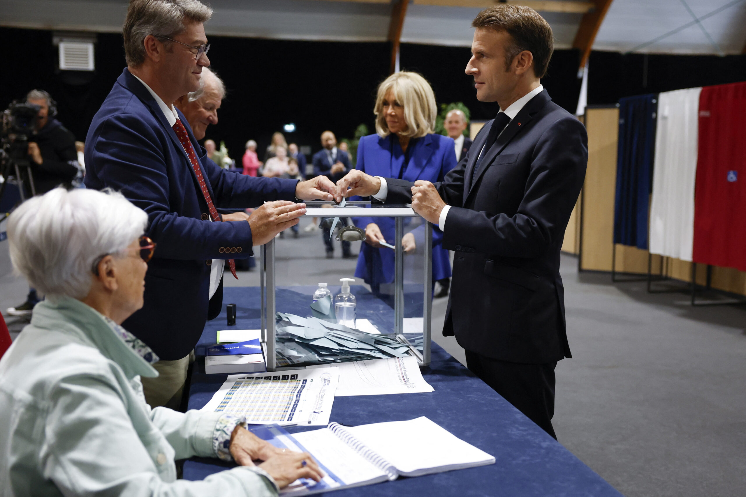Ο Γάλλος πρόεδρος έφτασε στο εκλογικό του κέντρο στο Λε Τουκέ, όπου και ψήφισε, γύρω στις 12.30 μ.μ., συνοδευόμενος από τη σύζυγό του Μπριζίτ.
