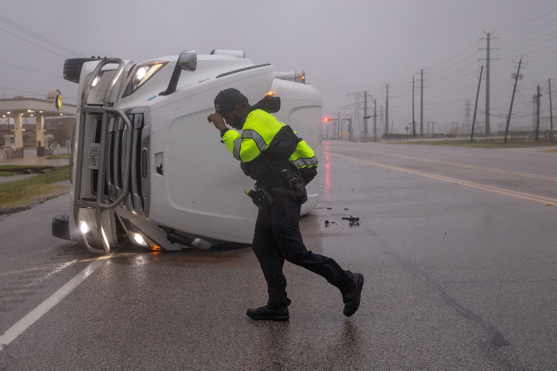 Πριν από το ξημέρωμα, σφοδροί άνεμοι και καταρρακτώδεις βροχές έπληξαν πόλεις, όπως το Γκάλβεστον, το Σάρτζεντ, το Λέικ Τζάκσον και το Φρίπορτ.
