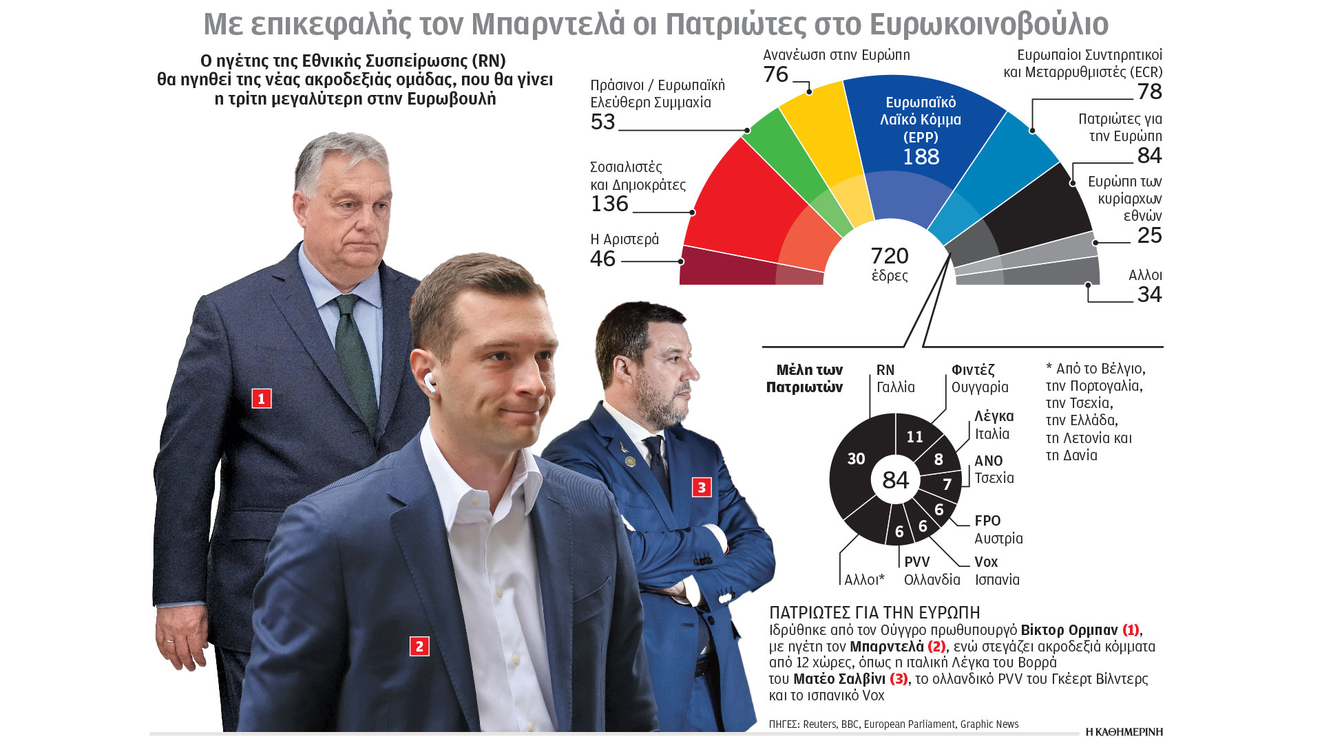 ΒΡΥΞΕΛΛΕΣ – ΑΝΤΑΠΟΚΡΙΣΗ. «Ευρώπη των κυρίαρχων εθνών» αποκαλείται η τρίτη –κατά σειράν– ακροδεξιά ευρωομάδα του Ευρωπαϊκού Κοινοβουλίου, που κατόρθωσε να συσταθεί χθες με επικεφαλής την Εναλλακτική για τη Γερμανία (AfD) και τη συμμετοχή μικρότερων ακροδεξιών κομμάτων, όπως το γαλλικό Reconquete, το τσεχικό SPD, το ουγγρικό κίνημα «Πατρίδα μας», ενώ εκτός έμεινε το ισπανικό Se Acabο La Fiesta (SALF).