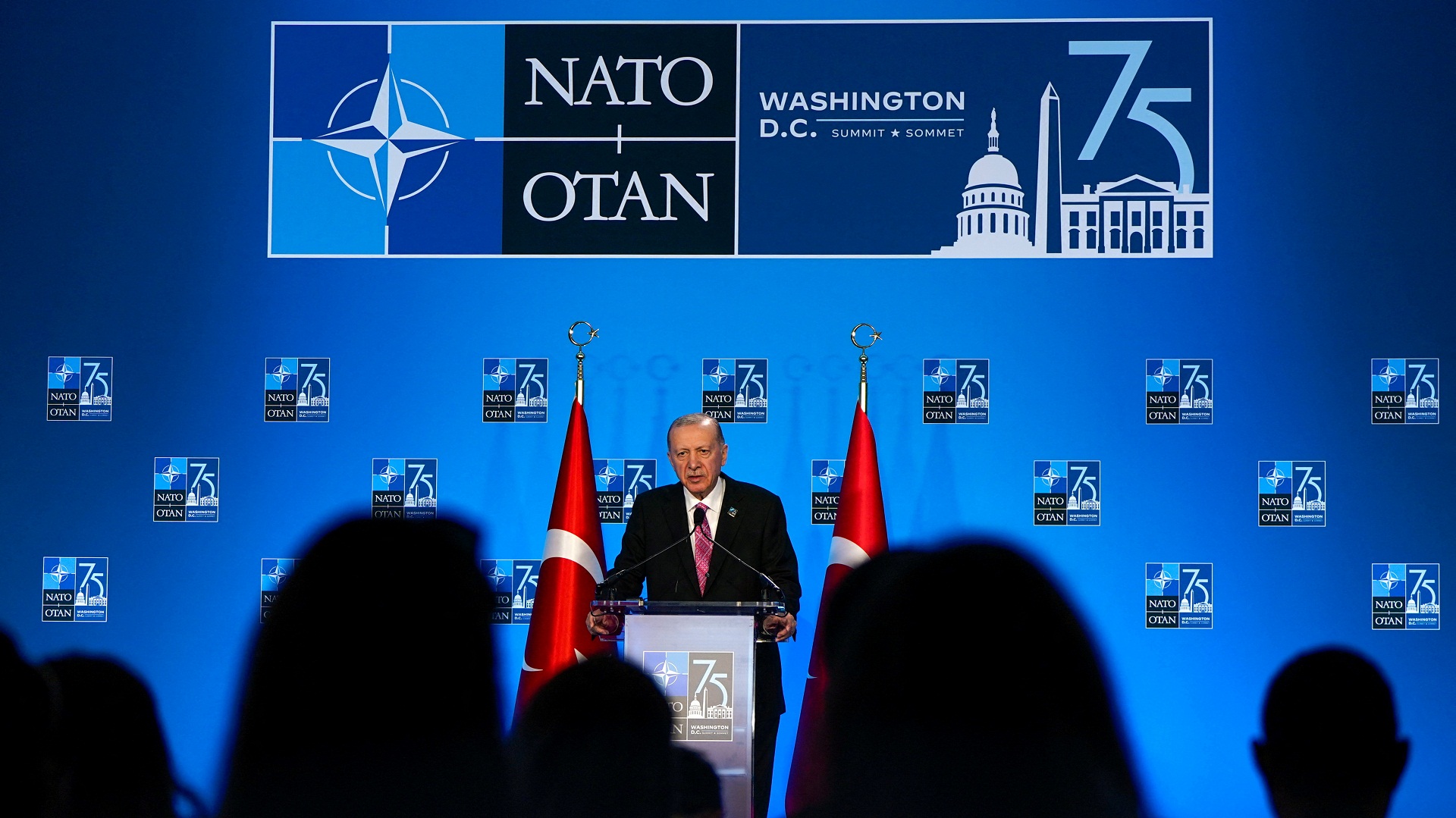 Την έμμεση παραδοχή ότι το πρόγραμμα των μαχητικών αεροσκαφών F-16 υφίσταται περιορισμούς έκανε ο Τούρκος πρόεδρος Ρετζέπ Ταγίπ Ερντογάν, σε συνέντευξη Τύπου που παραχώρησε κατά την ολοκλήρωση της συνόδου κορυφής του ΝΑΤΟ στην Ουάσινγκτον, τονίζοντας ότι ο Τζο Μπάιντεν του υποσχέθηκε να παρέμβει εντός εβδομάδων. Εστρεψε εξάλλου τα βέλη του κατά του Ισραήλ και του πρωθυπουργού Μπέντζαμιν Νετανιάχου για τον πόλεμο στη Γάζα και επιβεβαίωσε ότι η Τουρκία ζητεί την ένταξή της ως πλήρες μέλος στον Οργανισμό Συνεργασίας της Σαγκάης.