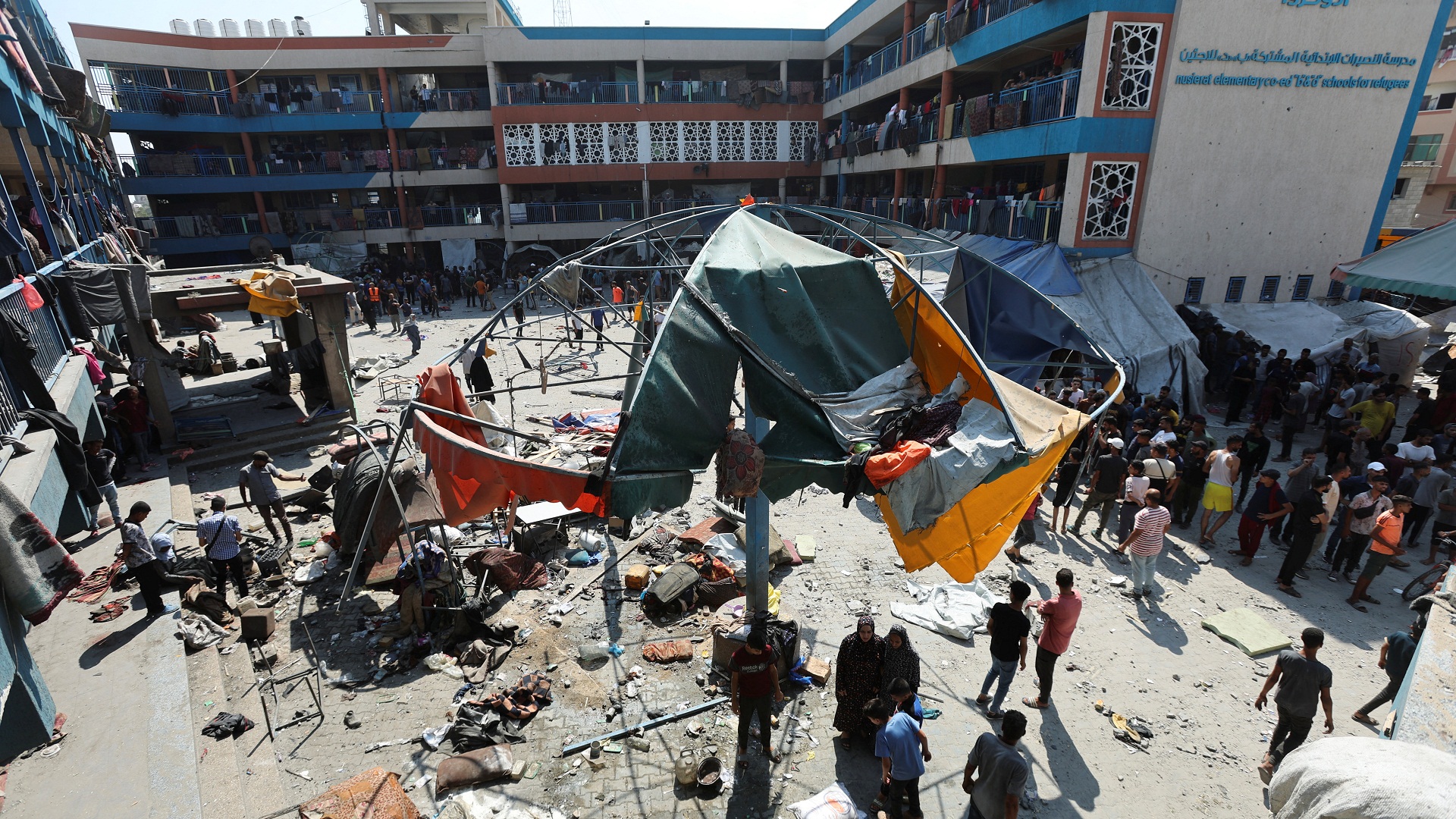Ο βομβαρδισμός του σχολικού κτιρίου Αμπού Αραμπάν, στο οποίο έχουν βρει καταφύγιο «χιλιάδες εκτοπισμένοι», είχε αποτέλεσμα να χάσουν τη ζωή τους τουλάχιστον «15 άνθρωποι», στην πλειονότητά τους γυναίκες και παιδιά, δήλωσε ο εκπρόσωπος της παλαιστινιακής πολιτικής προστασίας Μαχμούντ Μπασάλ.