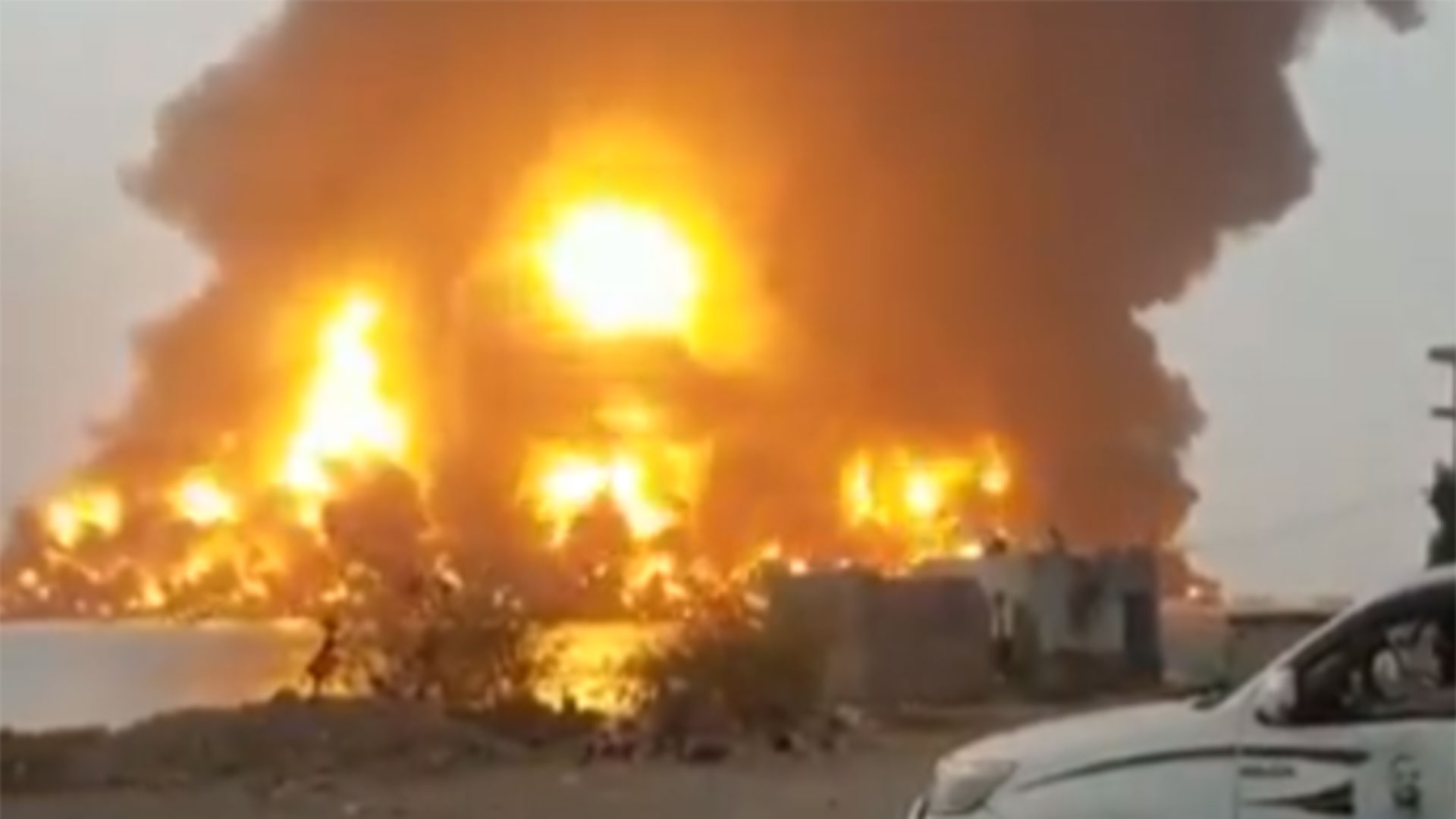 Οι αεροπορικοί βομβαρδισμοί προκάλεσαν μια τεράστια φωτιά και τεράστιες ζημιές στο λιμάνι. Μια πελώρια στήλη μαύρου καπνού υψωνόταν στον ουρανό, σύμφωνα με εικόνες του Al-Massirah. «Ομάδες πολιτικής άμυνας και πυροσβέστες προσπαθούν να σβήσουν τη φωτιά που καίει δεξαμενές πετρελαίου του λιμανιού», μετέδωσε.
