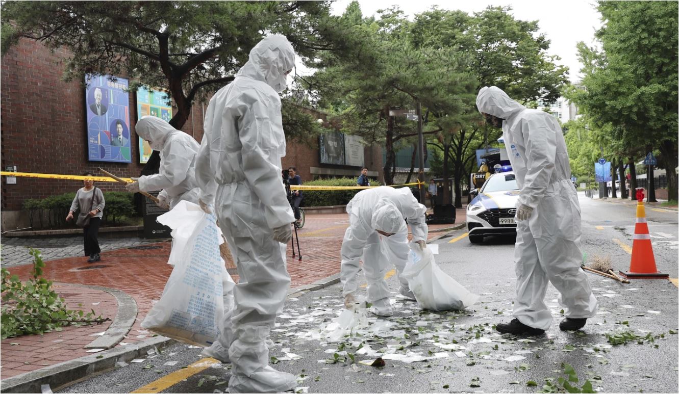 Τα απορρίμματα που έπεσαν στο κτιριακό συγκρότημα, στο κέντρο της Σεούλ, δεν περιείχαν επικίνδυνα υλικά και κανείς δεν τραυματίστηκε από την πτώση τους, γνωστοποίησαν οι νοτιοκορεατικές αρχές.