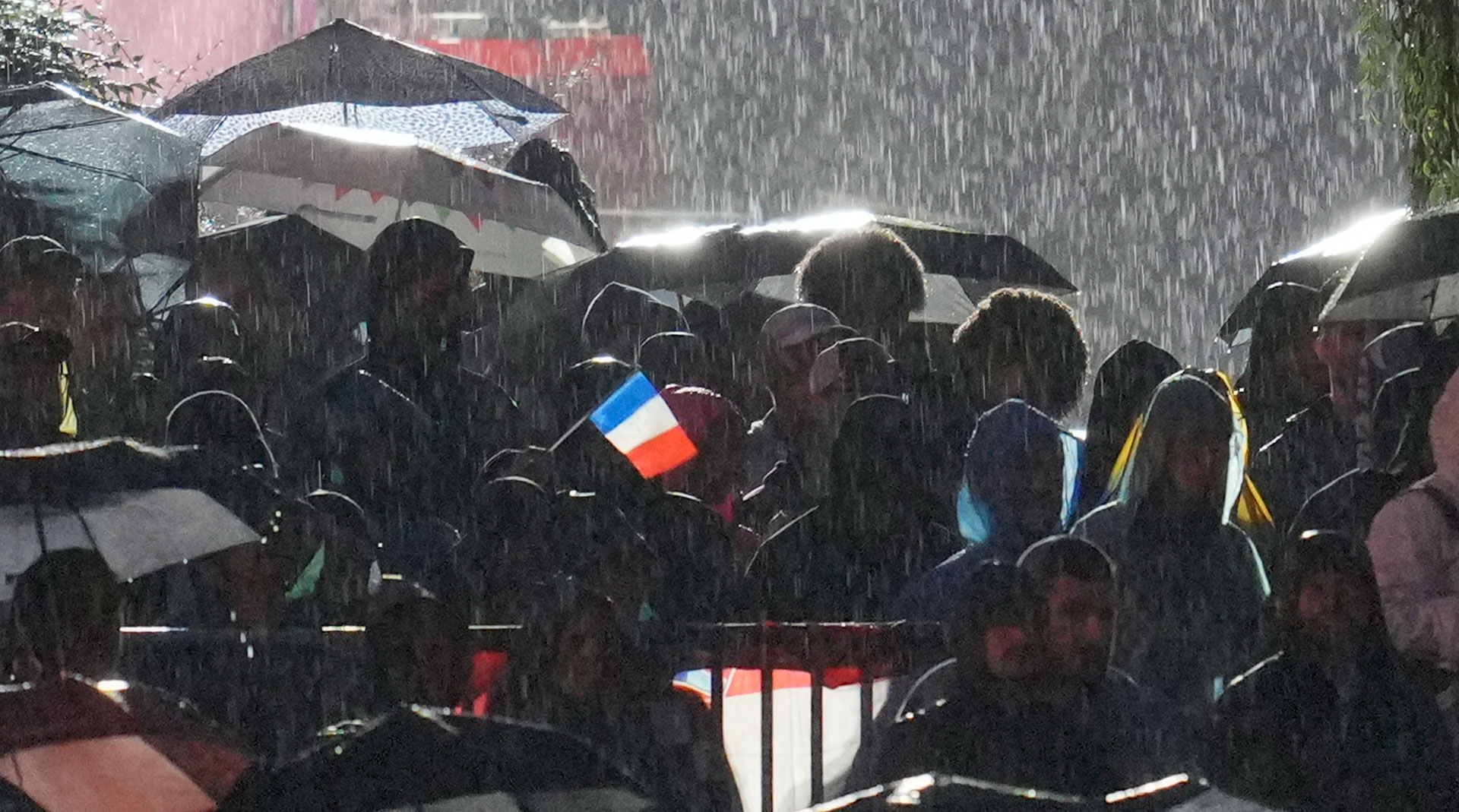 Στις κερκίδες το γαϊτανάκι των απογοητεύσεων συνεχιζόταν. Δεν υπήρχε επαρκής αριθμός εθελοντών για να δείξουν τις θέσεις. Στην εξέδρα των δημοσιογράφων, επάνω στα γραφεία, είχαν τοποθετήσει κάποια διάφανα πλαστικά καλύμματα με τη λογική να προστατέψουν οι εκπρόσωποι του Τύπου τον εξοπλισμό τους αλλά δεν είχαν σκεφτεί ότι οι δημοσιογράφοι θα πρέπει και να γράψουν και αυτό δεν μπορούσε να γίνει πάνω από τα πλαστικά καλύμματα. Εξυπακούεται ότι δεν υπήρχε κάποιο προστατευτικό στέγαστρο για τη βροχή. Στέγαστρο υπήρχε μόνο στο πάνω διάζωμα της εξέδρας των επισήμων, εκεί που βρισκόταν ο πρόεδρος της Διεθνούς Ολυμπιακής Επιτροπής Τόμας Μπαχ. Έτσι, είδαμε πολλούς αρχηγούς κρατών και πρωθυπουργούς, μεταξύ των οποίων και ο Ελληνας Πρωθυπουργός Κυριάκος Μητσοτάκης να προσπαθούν να προστατευτούν φορώντας, όπως και οι θεατές, πλαστικά αδιάβροχα μίας χρήσης, κάτι που αποτέλεσε μία.. μαύρη κουκίδα στις υποσχέσεις των Γάλλων για «πράσινους» αγώνες.