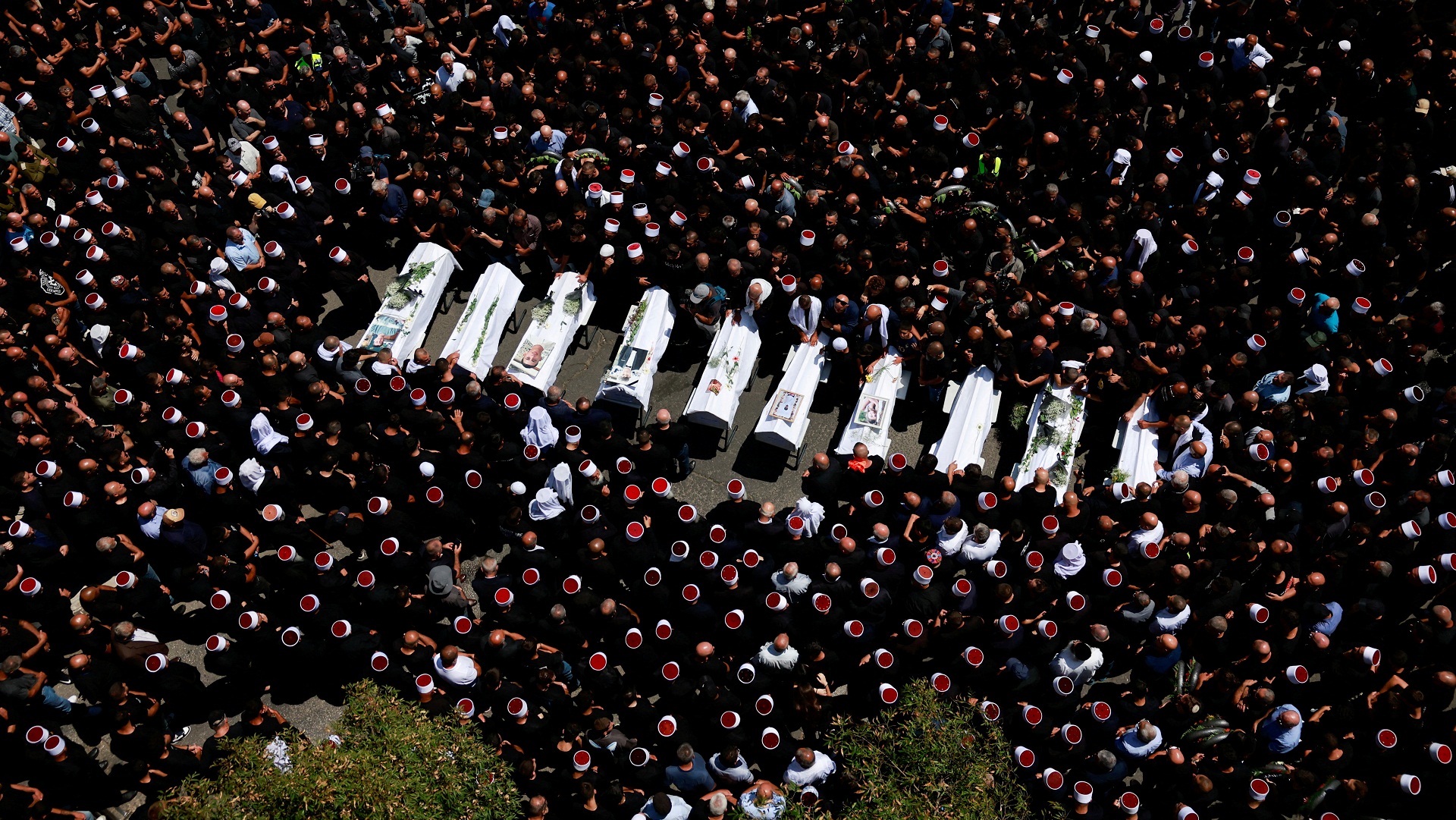 Χιλιάδες άνθρωποι συγκεντρώθηκαν στην κοινότητα για τις κηδείες των θυμάτων, ανάμεσά τους γυναίκες που φόραγαν μαύρα φορέματα του πένθους και λευκά μαντίλια στα κεφάλια.