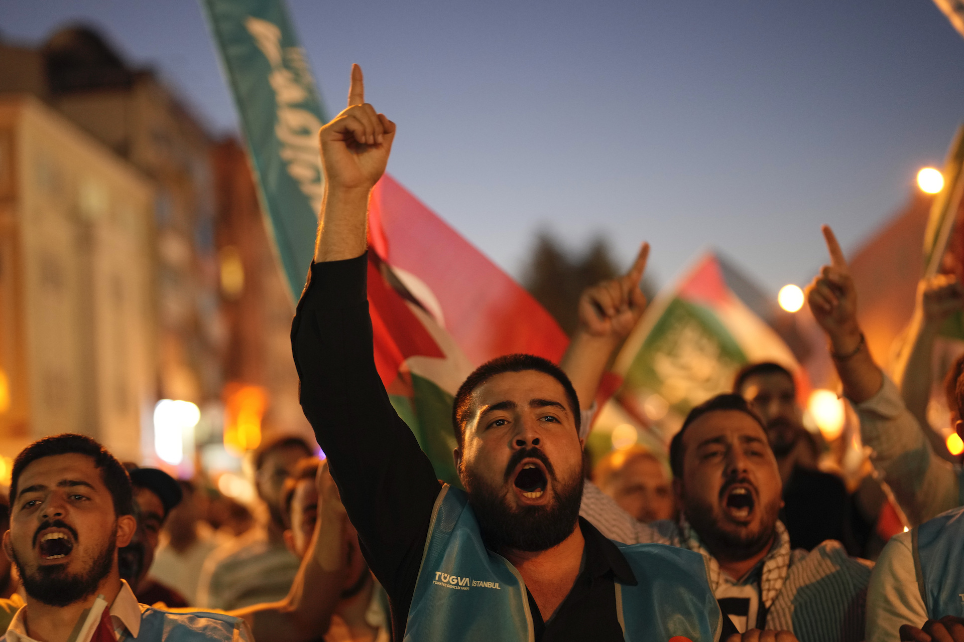 Χιλιάδες διαδηλωτές πραγματοποίησαν πορεία στο κέντρο της Κωνσταντινούπολης, διαμαρτυρόμενοι για τη δολοφονία του ηγέτη της Χαμάς, Ισμαήλ Χανίγια.