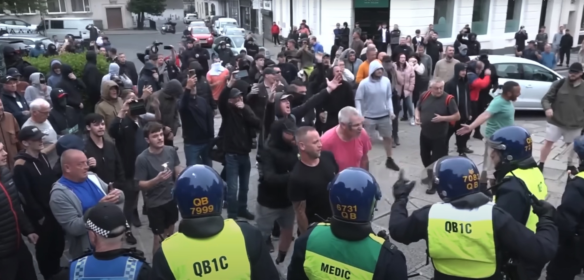 Τα επεισόδια βίας εναντίον μεταναστών και μουσουλμάνων, στα οποία πρωταγωνιστούν κύκλοι της Ακροδεξιάς και χούλιγκαν, συνεχίστηκαν για έβδομη συνεχή νύχτα τη Δευτέρα προς Τρίτη, με κυριότερα επίκεντρα το Πλίμουθ και το Μπέλφαστ. Εκατοντάδες ταραξίες επιχείρησαν να κινηθούν απειλητικά προς τζαμιά και κέντρα φιλοξενίας μεταναστών, εκτοξεύοντας τούβλα και εμπρηστικές βόμβες μολότοφ εναντίον αστυνομικών. Στο Μπέλφαστ, ένας μεσήλικας τραυματίστηκε σοβαρά αφού δέχθηκε επίθεση με μαχαίρι από αφιονισμένο ακροδεξιό, ενώ ένα σούπερ μάρκετ που ανήκε σε αλλοδαπό παραδόθηκε στις φλόγες.