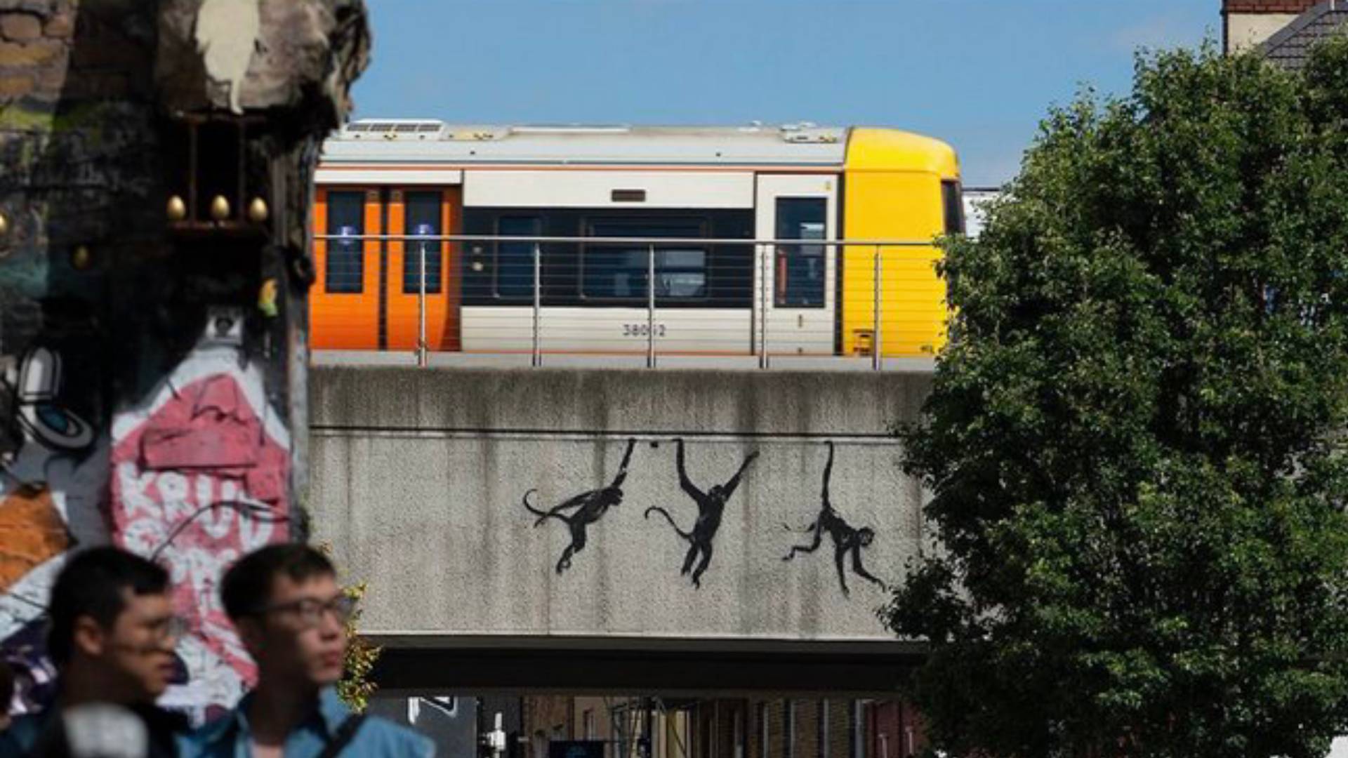 Το τρίτο εμφανίστηκε την Τετάρτη και δείχνει τρεις μαϊμούδες να κρέμονται από μια σιδηροδρομική γέφυρα στο Brick Lane του Λονδίνου.
