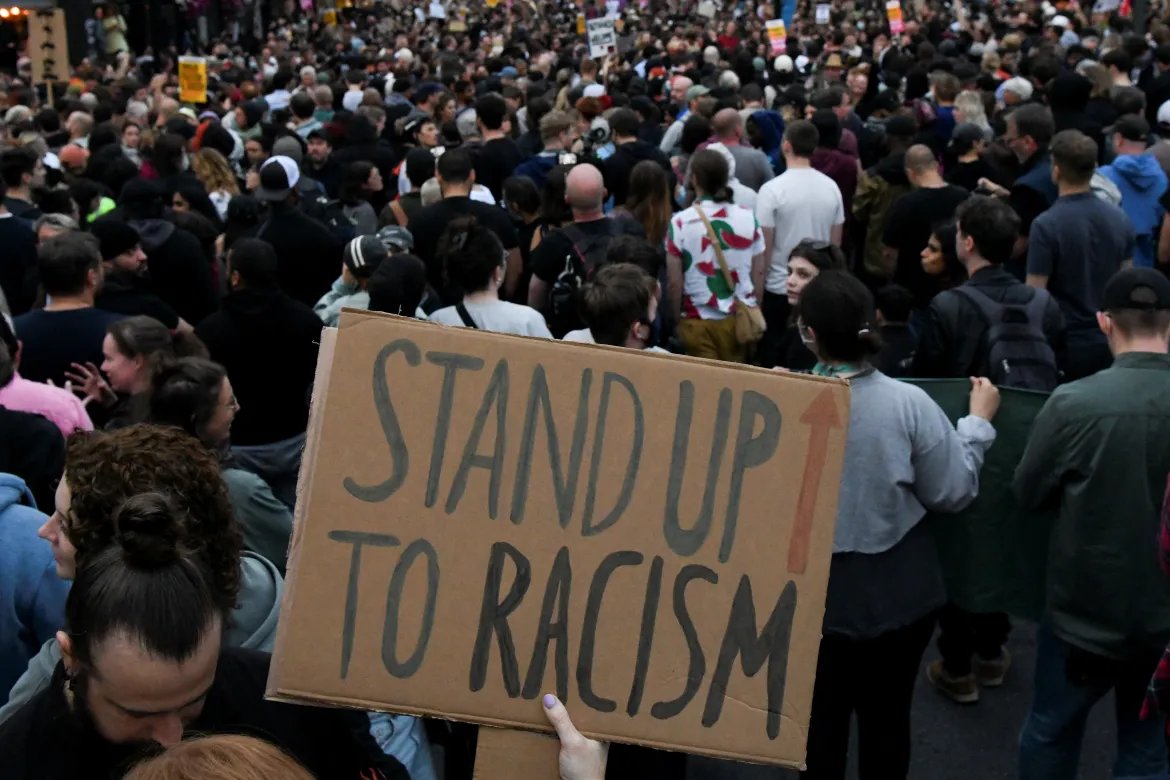 Χιλιάδες διαδηλωτές κατά του ρατσισμού συγκεντρώθηκαν σε πολλές πόλεις σε ολόκληρη τη Βρετανία έπειτα από μία εβδομάδα ταραχών, βίας και επεισοδίων σε βάρος μεταναστών.